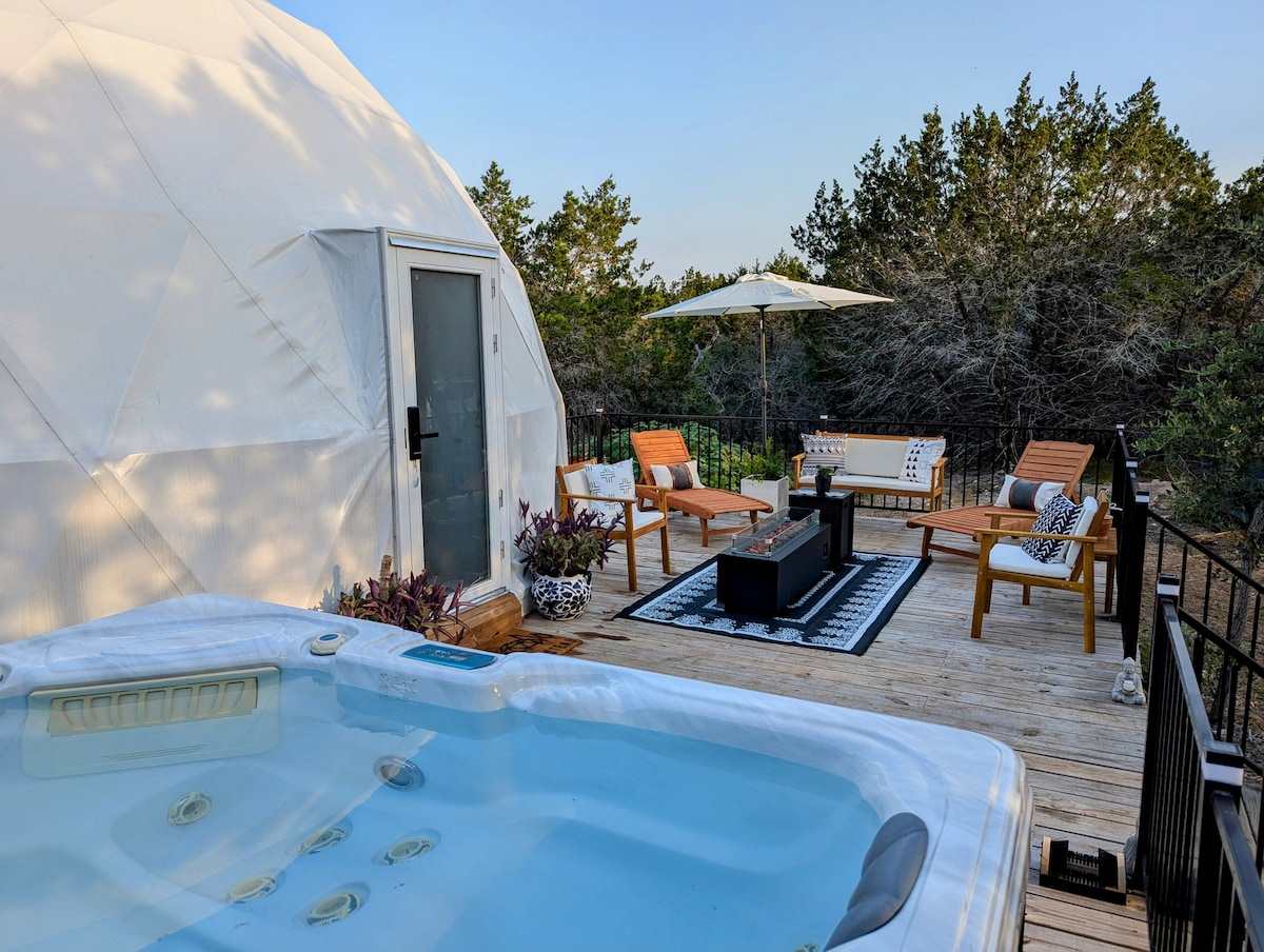 Cabaña glamping • Bañera de leña + Hill Country