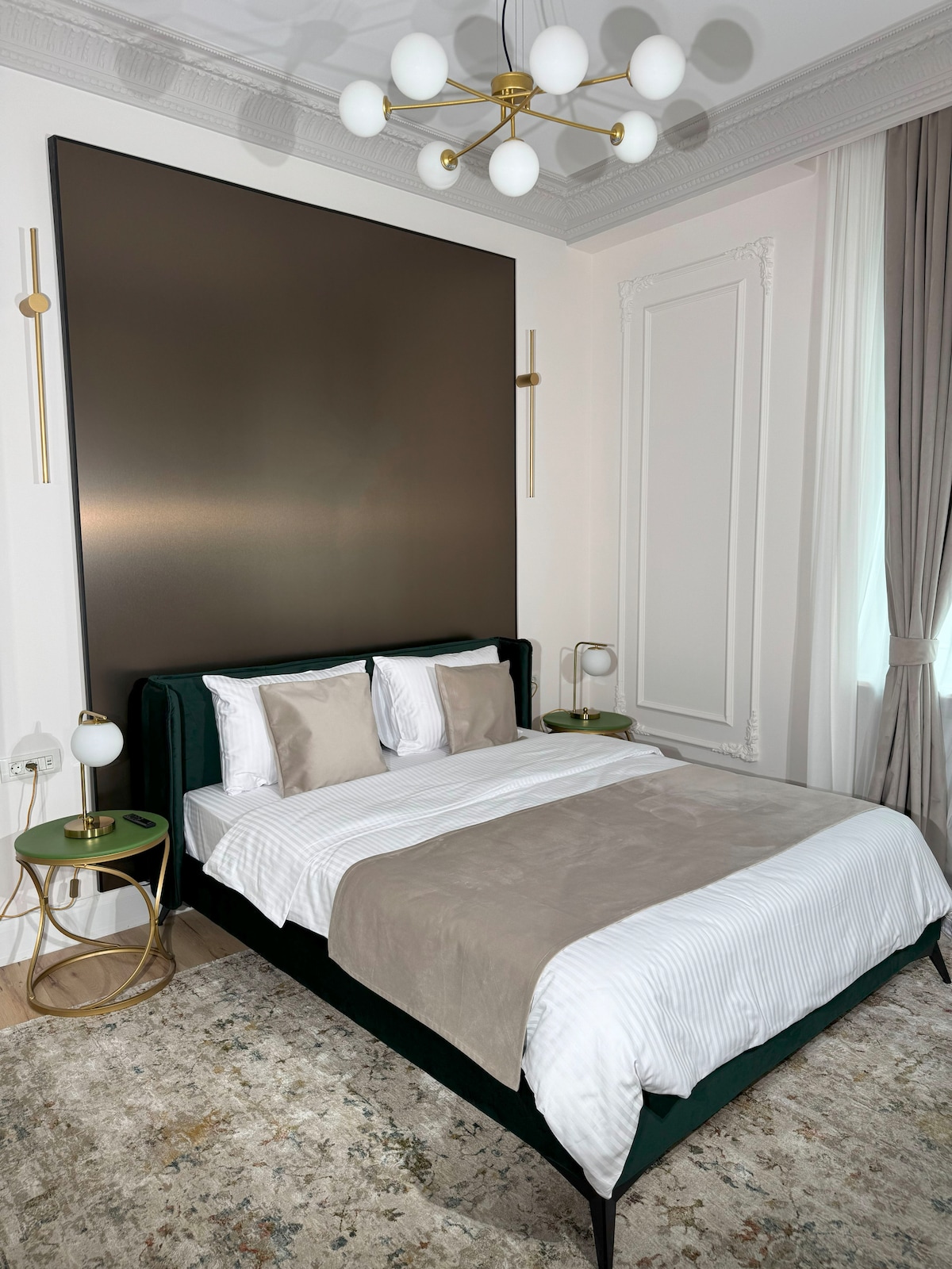 Entra en la habitación más romántica de nuestro hotel boutique de nueva construcción, ubicado en el casco antiguo de Bucarest. Al abrir la puerta, se desarrolla un colorido sueño con vibrantes detalles florales morados y verdes en las paredes, y tonos inspirados en la naturaleza en todos los muebles, pisos, azulejos, alfombras, sábanas y obras de arte. Rodeado de encantadores restaurantes y cafeterías, este acogedor refugio ofrece llegada autónoma, con fácil acceso a las principales atracciones y a pocos minutos de paradas de metro y autobús. Perfecto para explorar la ciudad.
