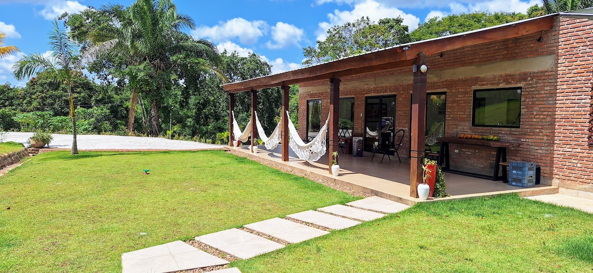 Alberga tu familia en el fantástico lugar con muchas zonas para divertirse. Quedaran recuerdos increibles en este sitio confortable sea con A/C o la frescura natural de la casa en medio del gran jardin con plantas ornamentales, frutales, florales que cobijan y alimentan a pajaros, ardillas, mariposas y Angeles ! Aquí a prepararse desayuno, refrigerio, almuerzo, parrilla, merienda, cena, jugos, sandwich, revueltos, omelet, etc ! En un pueblo ecoturistico con restaurants locales e internacional.