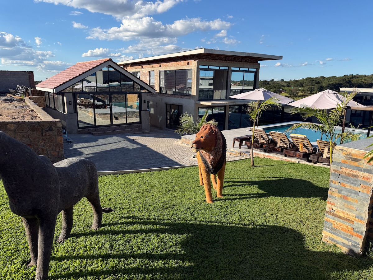 - 6 dormitorios, 5 baños, más de 12 huéspedes. - Experiencias dobles, de chef personal o niñera (extras opcionales). - Cocina completa, comedor, salón. - Ropa de cama de lujo del hotel. - Piscina. - Sala de entretenimiento exterior, zona de barbacoa/braai - Granite kopjes y rocas que recuerdan a Matopos Hills - Árboles maduros y vistas al jardín - Suites limpias, cómodas y bien diseñadas. - Fuentes - Cancha de tenis. - Seguro con seguridad las 24 horas. - Aire acondicionado -Starlink internet - Cerca eléctrica - Televisores en las suites
