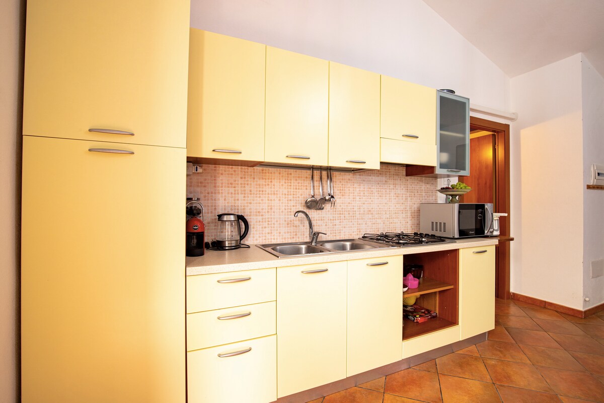 Ground floor apartment with independent access, large private front garden and covered veranda. Fully furnished, finely finished and equipped with all comforts. Consisting of kitchen with living area and sofa bed from a square and a half, double bedroom, full bathroom. Suitable to comfortably accommodate 3/4 people. Facilities: Full kitchen, crockery, oven, refrigerator with freezer, lcd TV, wi-fi connection, air conditioning, parking.