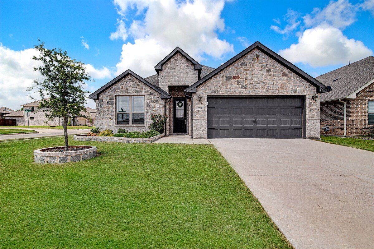 New 3-bedroom house located in the heart of Burleson, only 25 minutes from downtown Fort Worth. Convenient private driveway to accommodate 3 cars, garage with EV charger, 1600 square feet of living space, open concept living/dining/kitchen, a master bedroom with private en-suite, and two bedrooms with a shared bath. Out the back door is a partially fenced grassy back yard, and the front porch features a covered bistro set. Perfect for a family visiting Fort Worth!