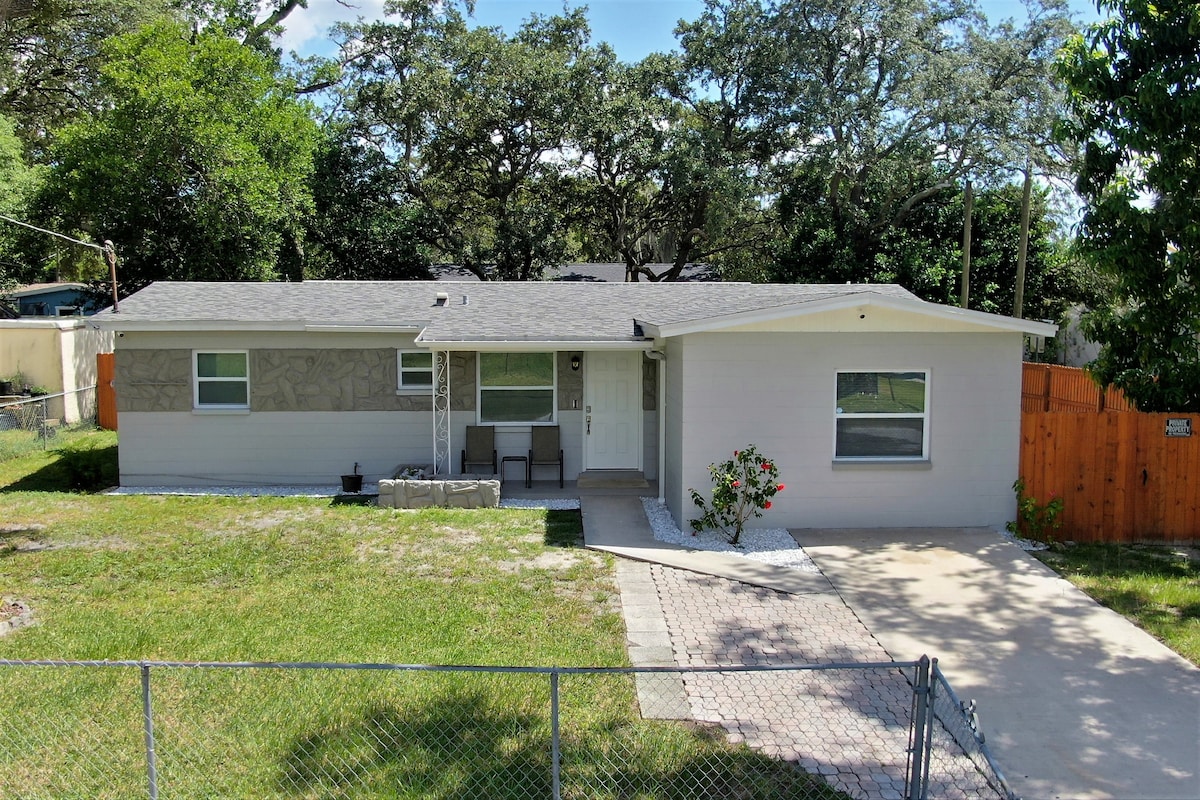 Nuevo 1+1 ubicado en Tampa. Completamente renovado, en un barrio tranquilo. Tiny Tampa es una acogedora suite privada, unidad separada del alquiler de la casa principal, con entrada privada y estacionamiento gratuito para dos vehículos. Hermoso patio trasero privado cerrado con patio cubierto y parrilla. 🌟Camina hasta Busch Gardens y Adventure Island. 🌟1 milla de USF. A 🌟20 minutos del centro de la ciudad, el aeropuerto, Sparkman Wharf, el Amalie Arena, el estadio Raymond James, Ybor City y hermosas playas de arena blanca. 🌟1,5 millas de golf y club de campo