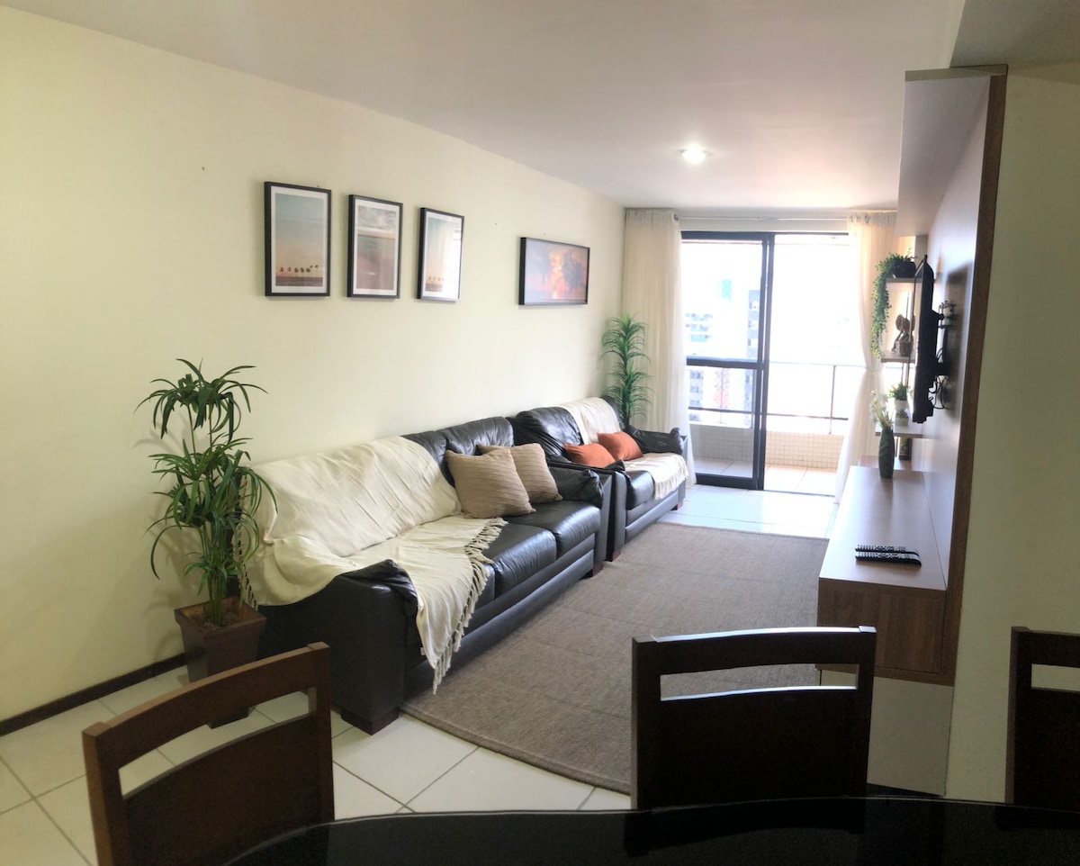 Disfrute del placer de estar en João Pessoa, en una excelente ubicación, frente al mar y en el corazón de Tambaú. Bares, restaurantes, supermercados, farmacia y feria artesanal, todo a poca distancia. En un apartamento de 70 m², balcón, cómoda sala de estar con TV por cable, cocina totalmente equipada, una suite y un segundo dormitorio, ambos con oficina en casa. Wifi de excelente calidad y aire acondicionado en todas las habitaciones. De viaje o trabajando, ¡tu mejor lugar para quedarte!