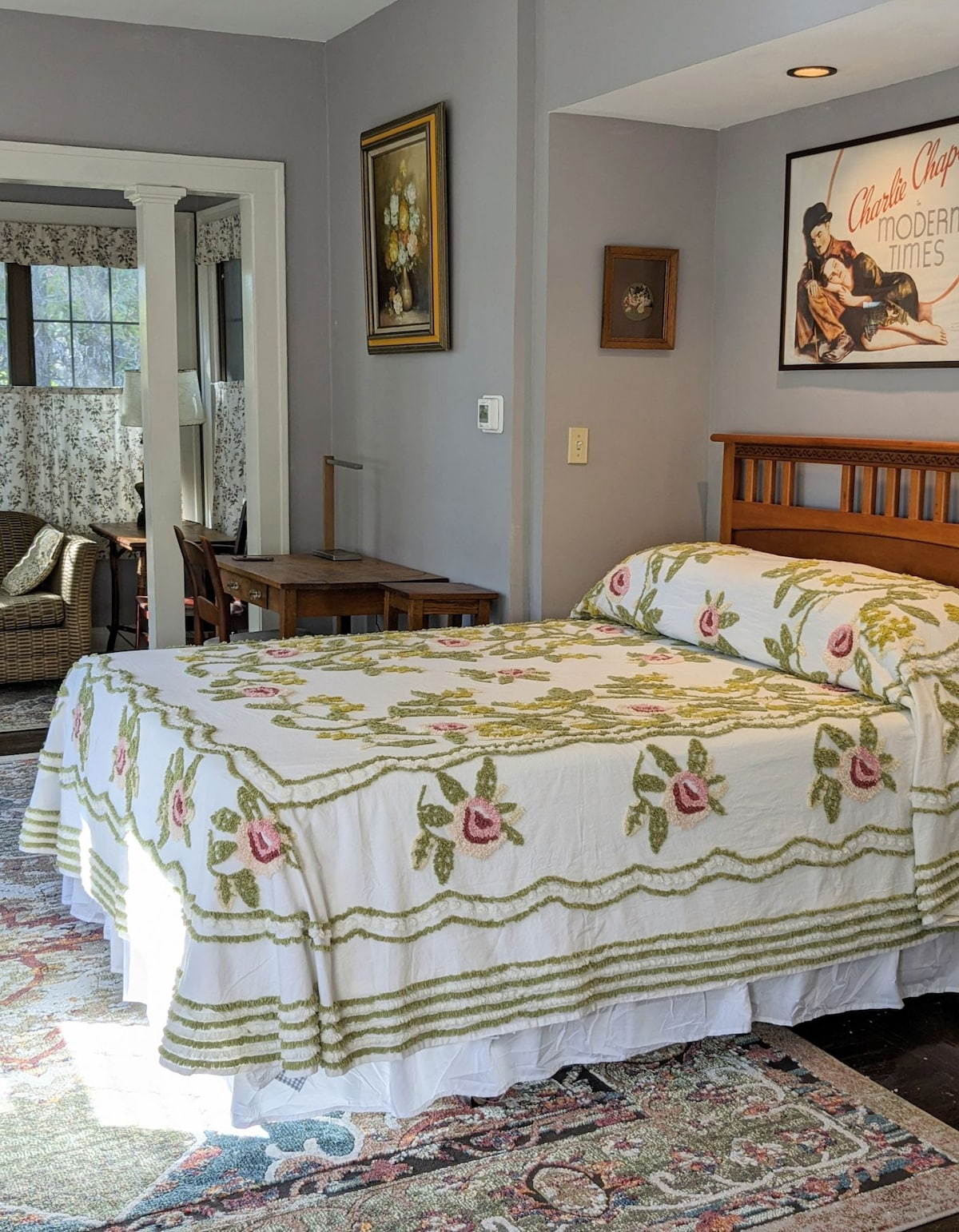 Me gusta presumir de que este es el apartamento tipo estudio más bonito de la ciudad. Está en un edificio de apartamentos de ladrillo de estilo Arts & Crafts construido en 1915 y conserva muchas de sus características arquitectónicas originales. Está amueblado con una mezcla ecléctica de antigüedades y piezas modernas, decorado con obras de arte originales y vintage, y equipado con platos y cubiertos vintage. Si te gusta beber de un tarro de bola, ¡este es tu lugar! Está amueblado para mayor comodidad y privacidad. Su techo alto y sus ventanas le dan carácter.