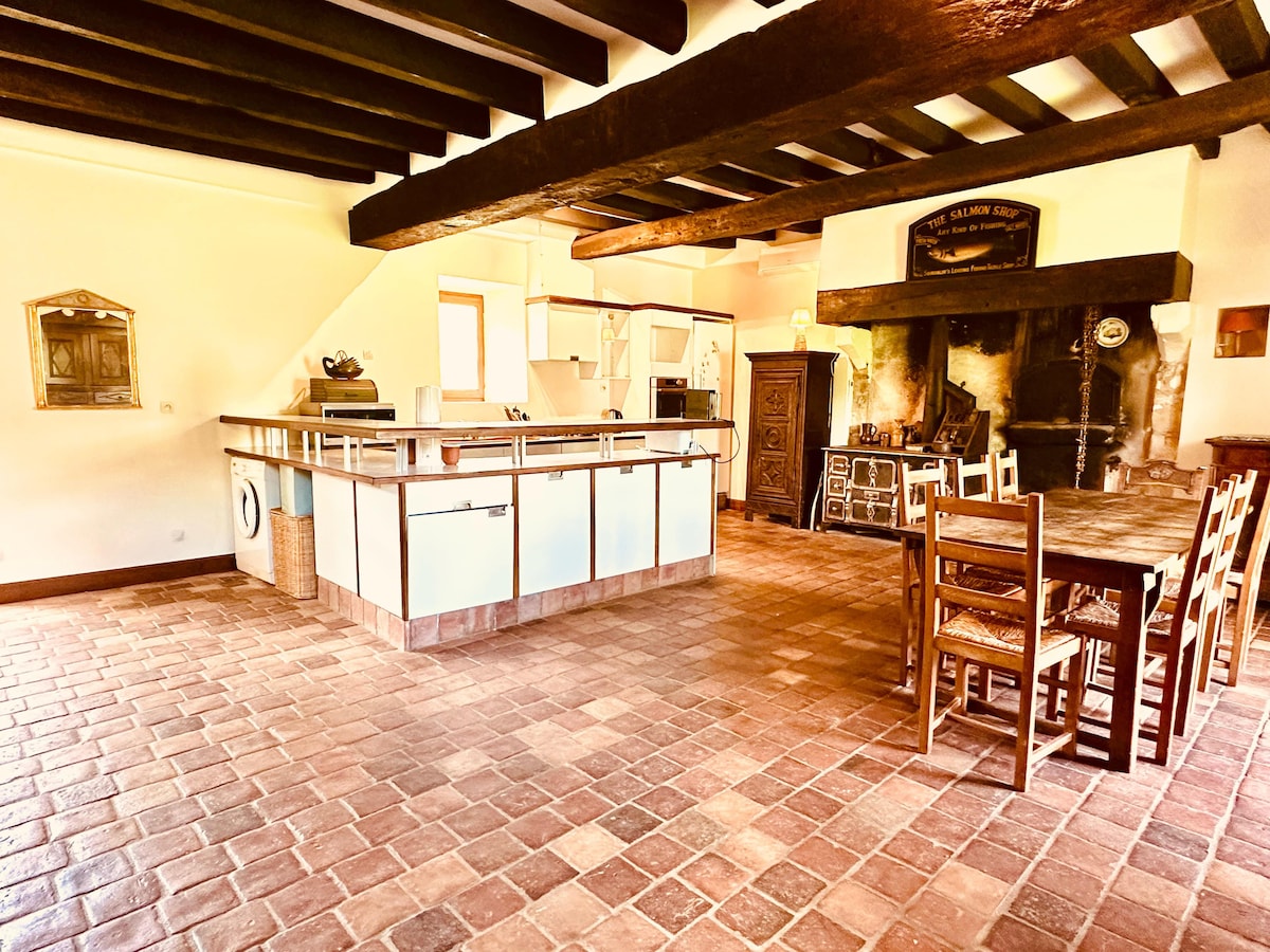 ¿Quiere que su estadía sea inolvidable y auténtica? Estás en el lugar indicado. Verdadero remanso de paz que data del siglo XVII en medio de una finca ajardinada de 4 hectáreas en el campo con un magnífico estanque. Lugar bucólico que lo seducirá por su tranquilidad y sus paisajes. ¡El interior espacioso garantiza la privacidad de todos! Aire acondicionado en la parte inferior. Cerca de la terminal eléctrica para automóviles. En la Oficina de Turismo de Neuvy Saint Sepulchre se le ofrecerán sitios culturales y excursiones.