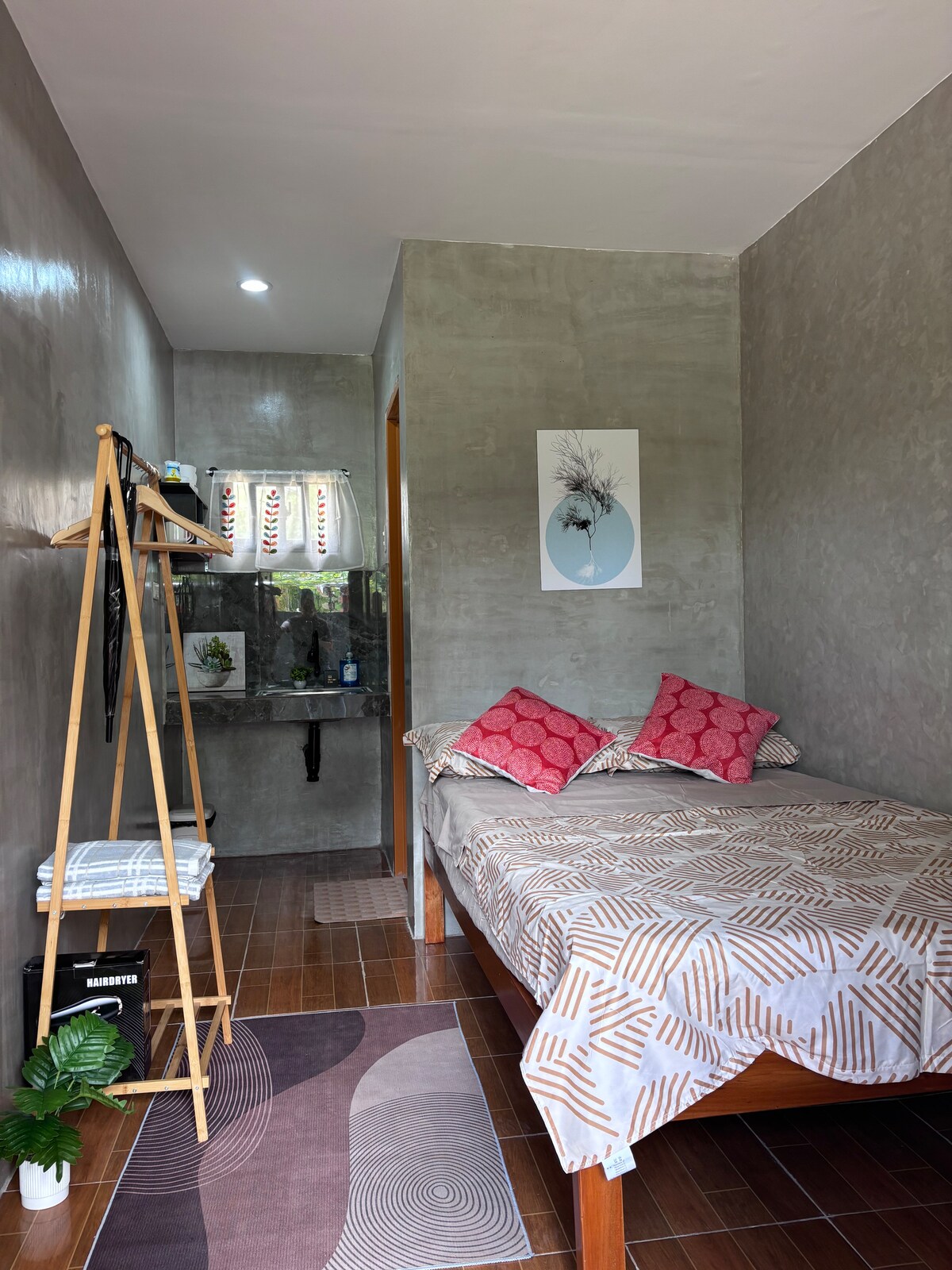 Disfruta de una escapada romántica mientras te hospedas en un acogedor apartamento recién remodelado con un dormitorio de diseño de tinte nativo/moderno y una terraza privada en la azotea frente a la vista panorámica del famoso acantilado de Taraw de El Nido. Deja que este sea tu acogedor hogar mientras exploras lo que El Nido puede ofrecerte durante tu estancia. ¡Estoy deseando que llegues pronto! 😊