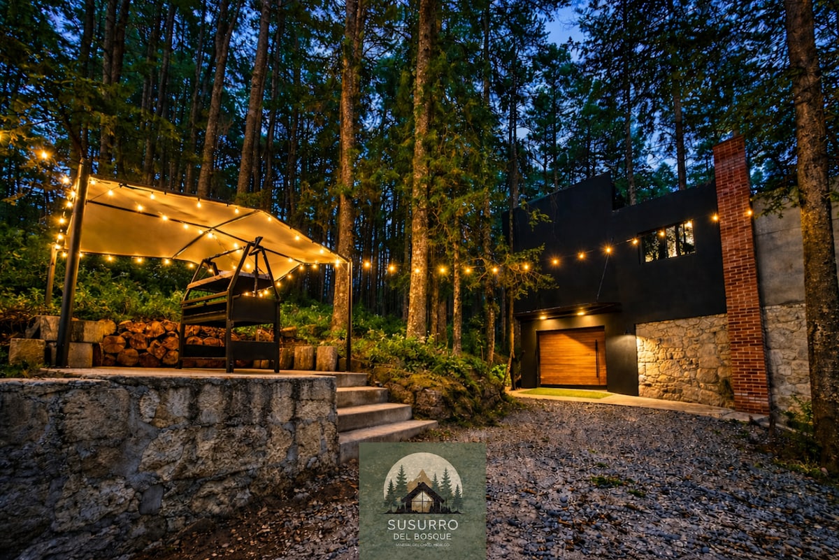 Romántico Chalet Oasis, tiene un diseño moderno y distinguido diseño. Se encuentra en un hermoso bosque donde es una delicia disfrutar de la tranquilidad, escuchando las aves y viento de los árboles. Podrás realizar caminatas en los alrededores y tomar un delicioso baño en la tina con vista al cielo. Disfruta de la vista del bosque en la terraza. Nos encargamos de dar el mejor servicio proporcionando lo indispensable para una estancia cómoda y relajante.