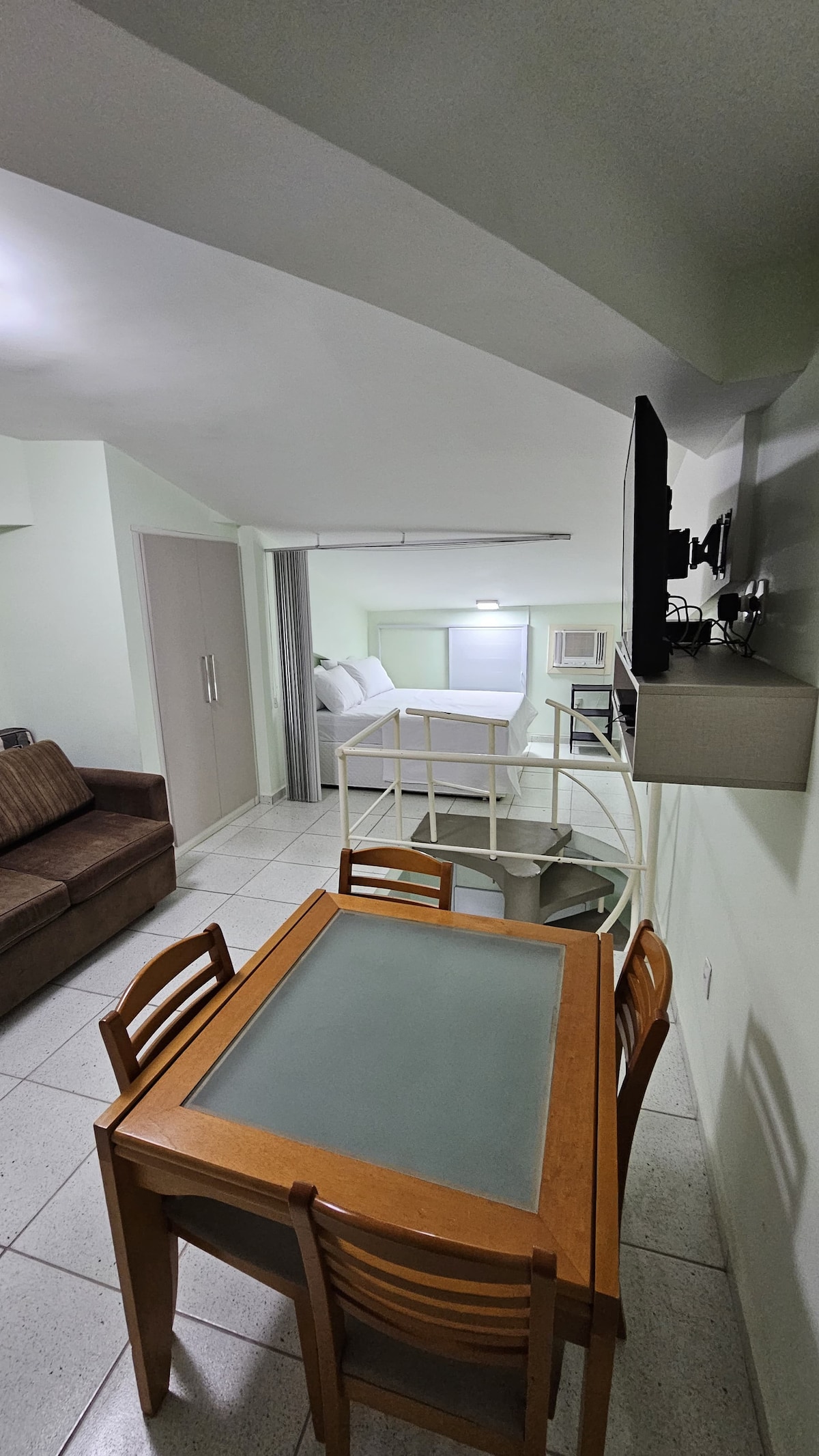 Aproveite a estadia em um apartamento confortável dentro de hotel, com acesso à piscina, academia e sauna. Localização imbatível: ao lado dos melhores restaurantes, a 3 minutos do centro e a 8 minutos da praia, tudo a pé. Estacionamento disponível por R$ 40,00/dia e café da manhã opcional por R$ 40,00 por pessoa. Crianças até 12 anos não pagam, acomodadas na cama existente ou colchonete. Atenção: hospedagem via Airbnb, sem serviços de hotelaria.