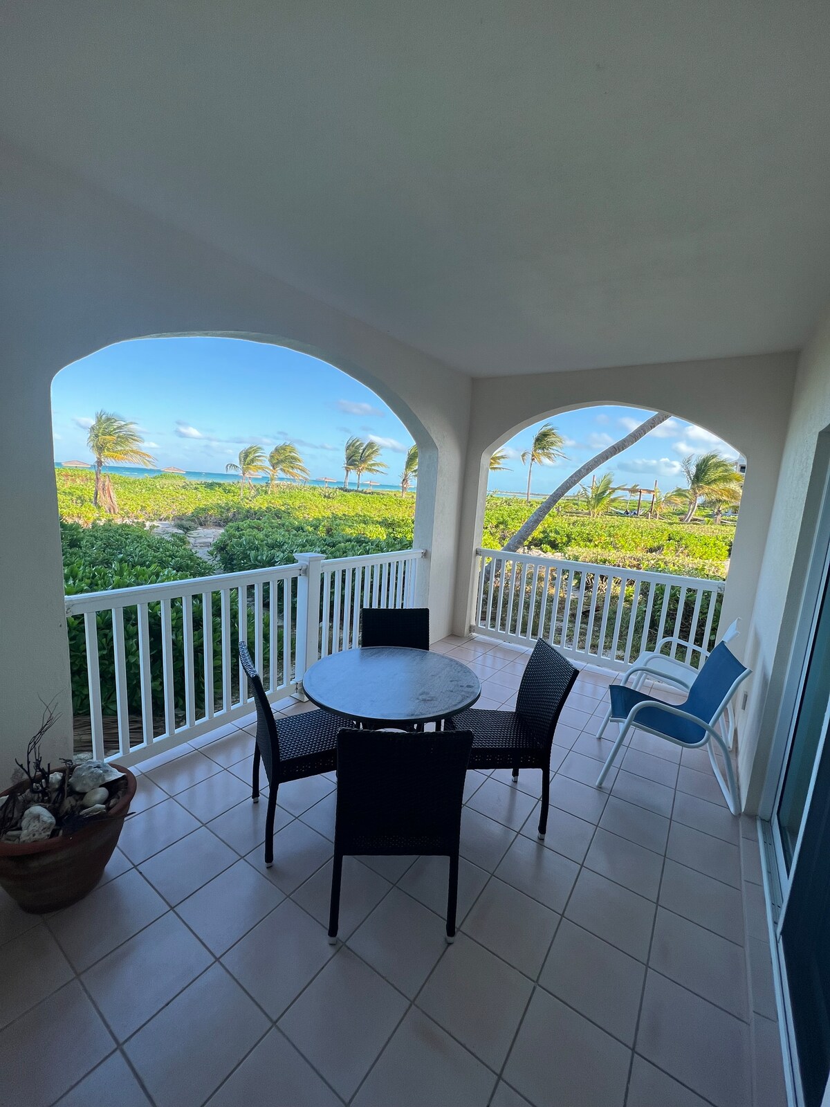 This Pristine, private poolside studio condo is beautiful, turquoise, peaceful & tranquil - as is Turks & Caicos. It is special - cool, casual, chill and comfortable - like the Provo vibe. Live the Villa Estate lifestyle like its your own estate, pool, 6,000 sq ft deck with chaise lounges and umbrellas, and Hot Tub! Enjoy cocktails & dine on your private veranda or large terrazza deck & watch the sunrise/sunset while enjoying the 180 degree panoramic views of Grace Bay. ! In a word, Paradise.