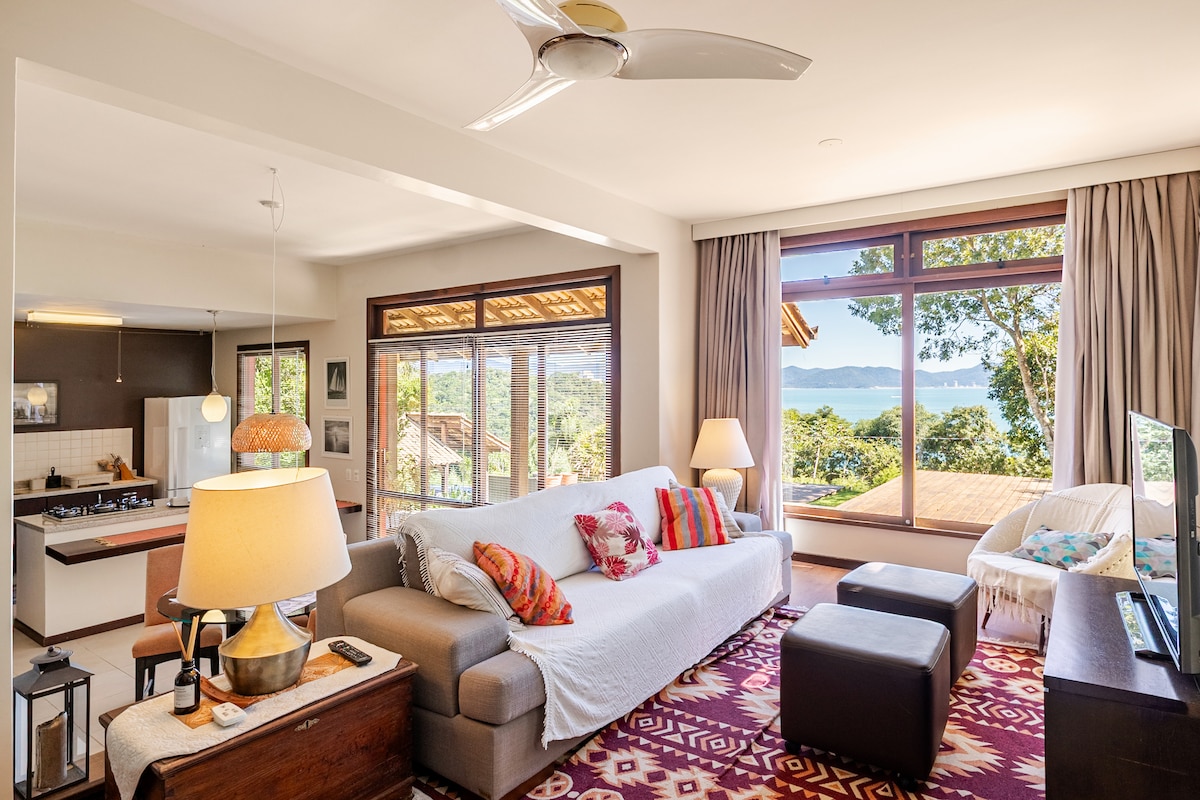 ¡Apartamento con jacuzzi privado y climatizado, hamaca y hermosas vistas al mar desde el balcón! Apartamento de 1 dormitorio, cocina completa (cocina, nevera, microondas, cafetera, tostadora y utensilios básicos), baño y sofá cama en la sala de estar. Hay 1 plaza de aparcamiento gratuita. La propiedad tiene un gran patio, zonas de barbacoa y piscina (compartida). Situado en una zona tranquila. Estamos cerca de las playas: Sepultura, Lagoinha y Retiro dos Padres (5 minutos a pie). Y a unos 15 minutos a pie del centro de Bombinhas.
