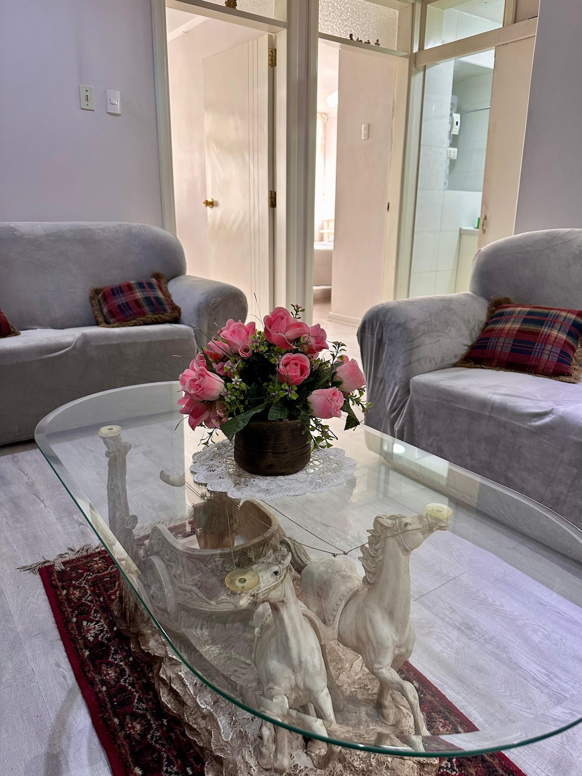Vive una experiencia inolvidable y sumérgete en la tranquilidad y comodidad de nuestro céntrico alojamiento. Perfecto para disfrutar con familia o amigos, ofrece habitaciones acogedoras, cocina completamente equipada, sala y comedor con muebles nuevos y confortables, así como un baño completo con agua caliente, acceso a internet y entretenimiento con un Smart TV de 55”. Te ofrecemos una cochera privada. Ubicado en el segundo piso, nuestro espacio combina accesibilidad, tranquilidad y seguridad