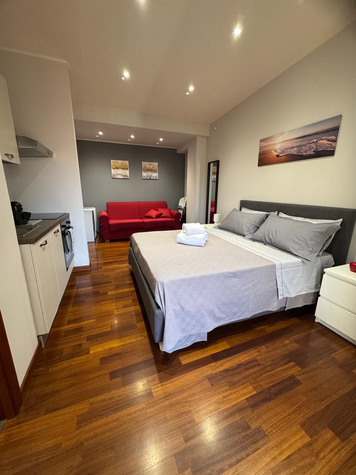 Elegante apartamento tipo estudio totalmente renovado en el centro de Reggio Calabria, en el cuarto piso con ascensor. Amueblado con buen gusto, tiene una cama doble, cocina equipada, baño privado, balcón, aire acondicionado y una puerta con código. A pocos pasos de Corso Garibaldi, Lungomare y museos. Ideal para estadías cortas o medianas, céntrico y bien comunicado.