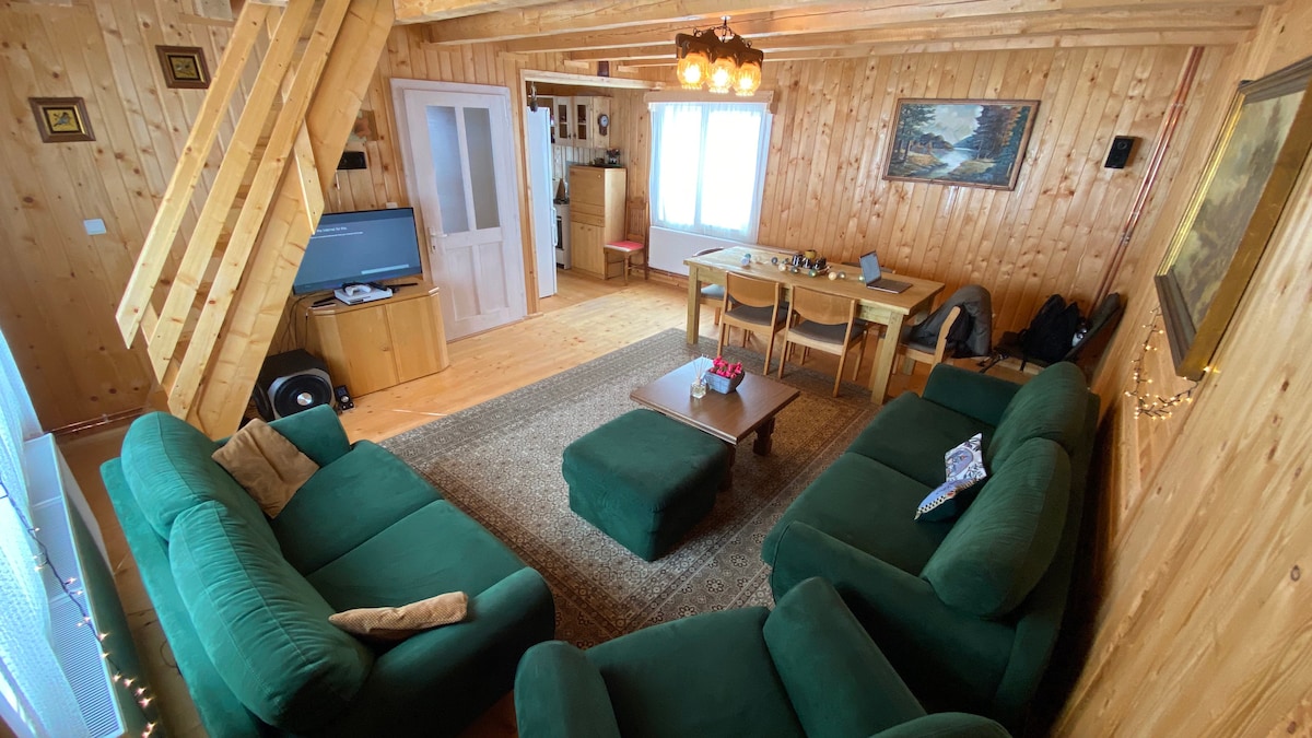 Este lugar único tiene un estilo propio. Es acogedor,aislado, rodeado de abetos, terreno de 6000m2. La bañera de fibra de vidrio higiénica solo se prepara previa solicitud. El interior tiene un diseño único con elegantes acabados de piedra y madera. La cocina está equipada con todo lo que necesitas, con comedor. La chimenea completa el ambiente de cuento de hadas. La calefacción por suelo radiante de la casa es con bomba de calor eléctrica. WIFI fibra óptica.