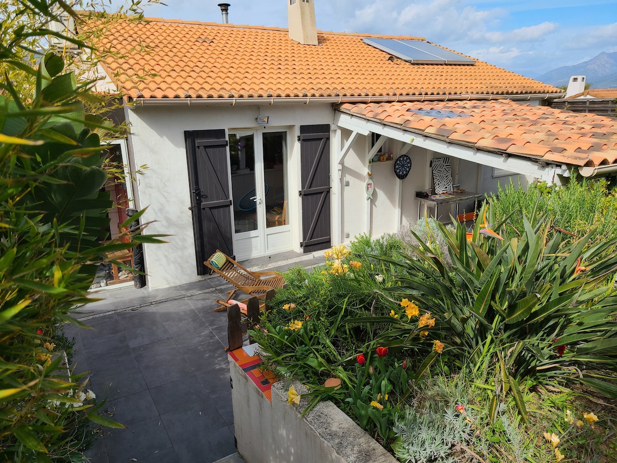 A 2 minutos de Propriano, a 5 minutos de las playas, una bonita villa de 2 plantas en una urbanización tranquila. Vivirá en la planta baja en un gran T2, un gran dormitorio con vestidor, un gran baño, una sala de estar con cocina totalmente equipada, sala de estar comedor, 2 cómodas que se pueden utilizar como camas. Podrá relajarse en una gran terraza, tomar el sol, muebles de jardín, mesa, sillas de jardín proporcionadas. Será recibido por Nina la dueña de la casa.