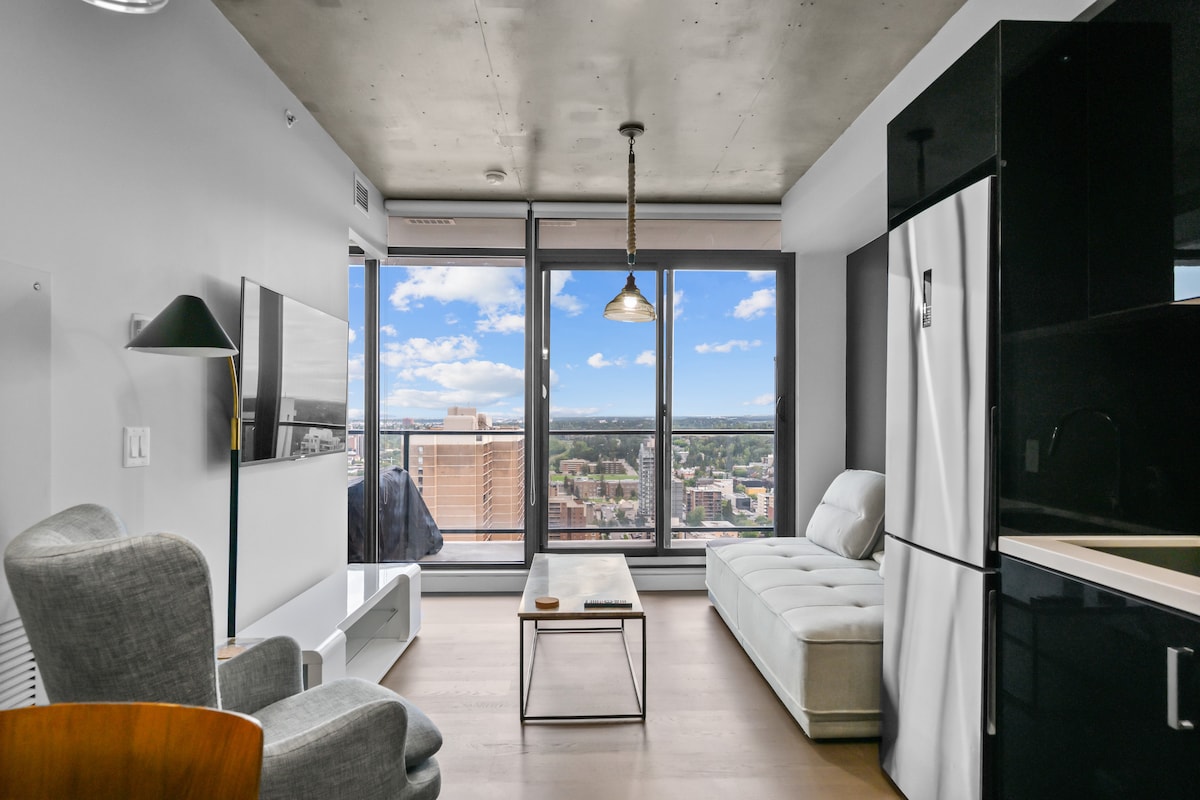 Bienvenido a Summit, una elegante unidad de esquina con impresionantes vistas a la montaña en el corazón del centro de YYC ubicada en la 1 .ª. A pocos pasos de la arena, BMO Centre y Hotel Arts, estás perfectamente posicionado para explorar la ciudad. Camina hasta 17th Ave o súbete al transporte público cercano con facilidad. Relájate en tu baño inspirado en el spa. Sumérgete en una espaciosa cama tamaño king y disfruta de comodidades modernas en todas partes. Disfruta de las vistas panorámicas desde el interior o desde el patio. Tu escapada elevada a la ciudad te espera.