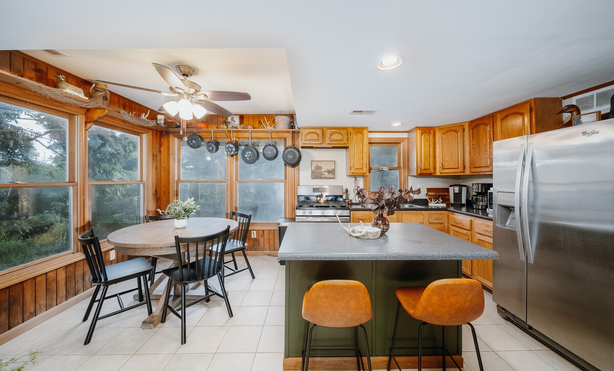 Unwind at this one-of-a-kind cabin nestled on 170 private acres of rolling countryside. Perfect for families, couples, or small groups, this retreat blends rustic charm with modern comfort. Grill dinner on the deck, and gather around the firepit under a sky full of stars. Inside, you’ll find a cozy open layout with a fully equipped kitchen, inviting living spaces, and comfortable bedrooms with warm cabin décor. Large windows bring the outdoors in, offering views of the woods and water.