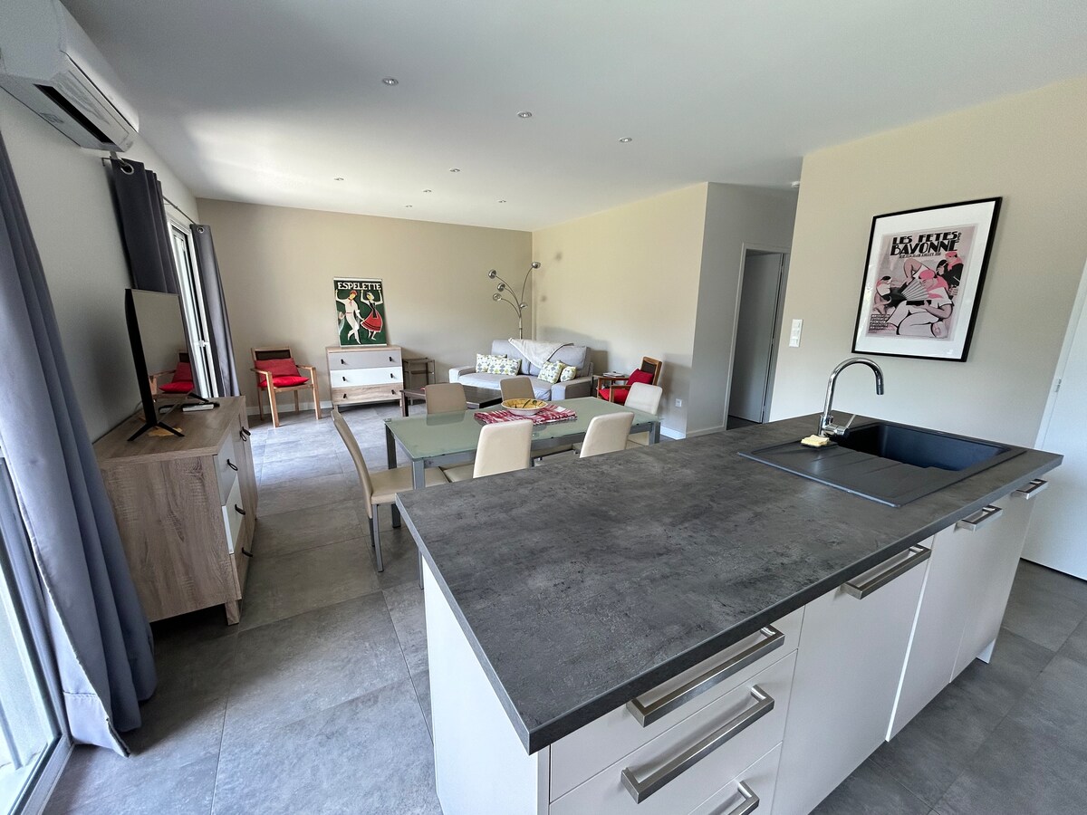 Encantadora casa entre las montañas y el mar. Le proponemos que venga a relajarse en nuestro tranquilo pueblo a 30 minutos de Bayona, las montañas vascas y el bosque de Landas. Casa contigua a la del propietario, pero completamente independiente por su entrada y su jardín. El pueblo se encuentra a 2 minutos y le ofrece muchas actividades y comodidades. Allí encontrará paz y tranquilidad.