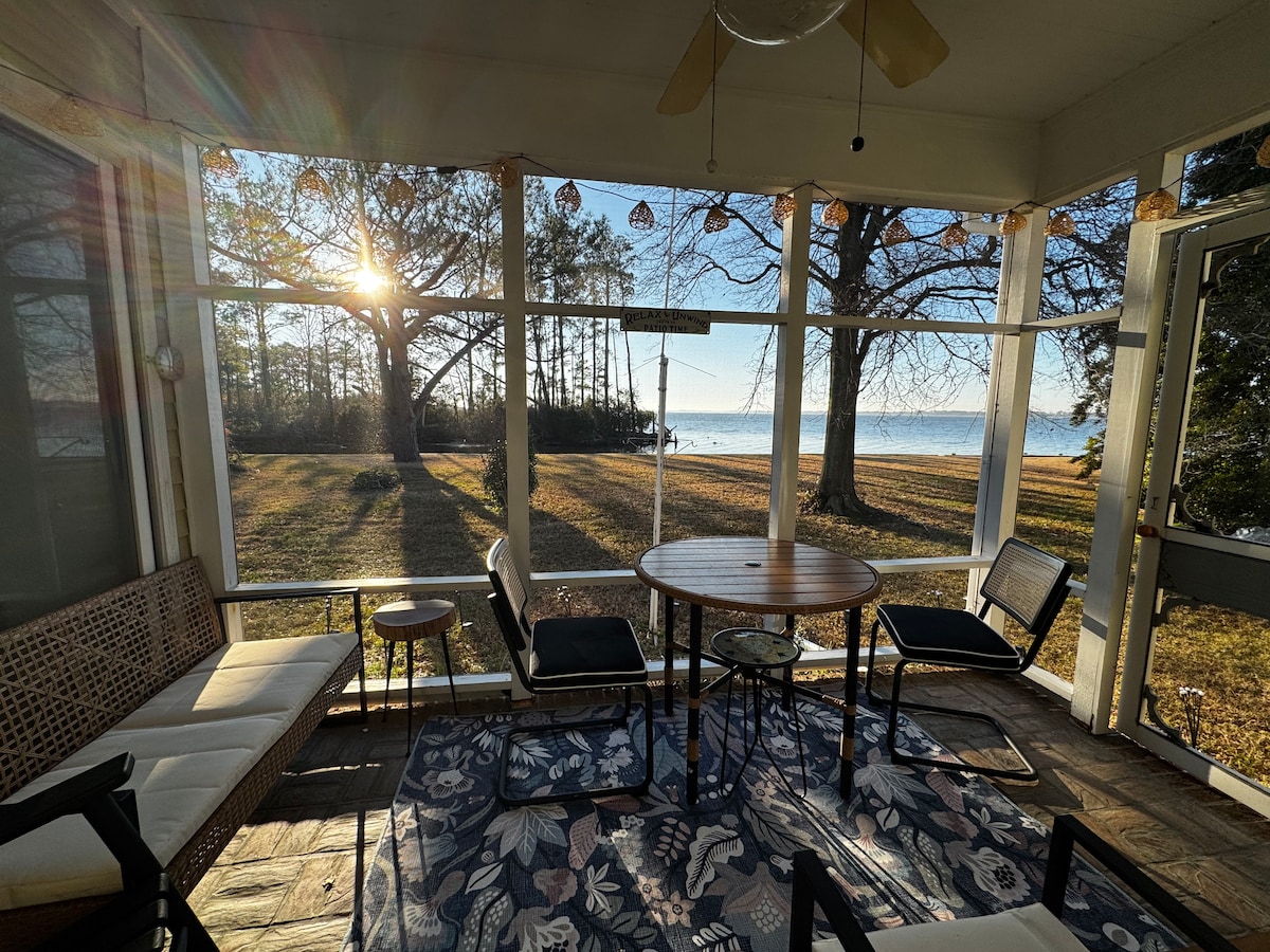 Ubicado en una curva tranquila del río Pasquotank, este entorno mágico te hará sentir el ritmo del río y su brillo dorado. Cuenta con un enorme porche con pantalla frente al mar con su propia chimenea y comedor. ¡También hay un salón privado en el muelle! Las antigüedades cuidadosamente seleccionadas cuentan una historia de elegancia atemporal mezclada con lujo moderno ideal para mañanas tranquilas y noches de descanso. Disfruta de la pesca, el kayak, la navegación, un fin de semana romántico, la observación de estrellas, un retiro creativo o una divertida escapada familiar.