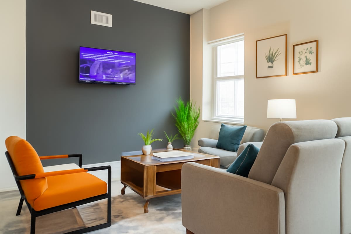 Este apartamento de 1 dormitorio en el piso inferior en Fishtown Urby ofrece una vida moderna con un diseño elegante. El dormitorio ofrece un refugio tranquilo, completo con amplio espacio en el armario. La sala de estar y el comedor abiertos crean un flujo continuo entre los espacios. Disfruta de una cocina totalmente equipada con electrodomésticos y utensilios de cocina actualizados, y una sala de estar equipada con un altavoz Sonos y un televisor inteligente. Camina a restaurantes y bares populares de la zona, o quédate en casa con el restaurante y bar en el lugar, Percy.
