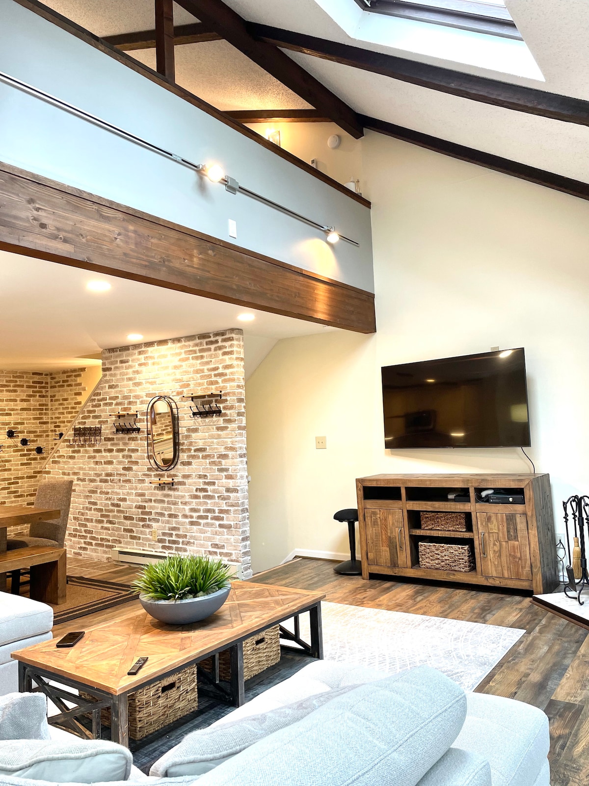 Beautifully renovated luxe townhouse for up to 8 guests, with 2 bedrooms, 2.5 baths, a full kitchen, office, loft, and a deck with a grill overlooking parklike shared grounds. Bright interiors, skylights, mountain views, and a marble master shower will take your breath away. Steps from Shawnee Mountain and a short drive to Shawnee Inn & Golf, Bushkill Falls, the Delaware Water Gap, outlets, and dining. Includes breakfast, snacks, and quality body care—ideal for families, couples, or groups.
