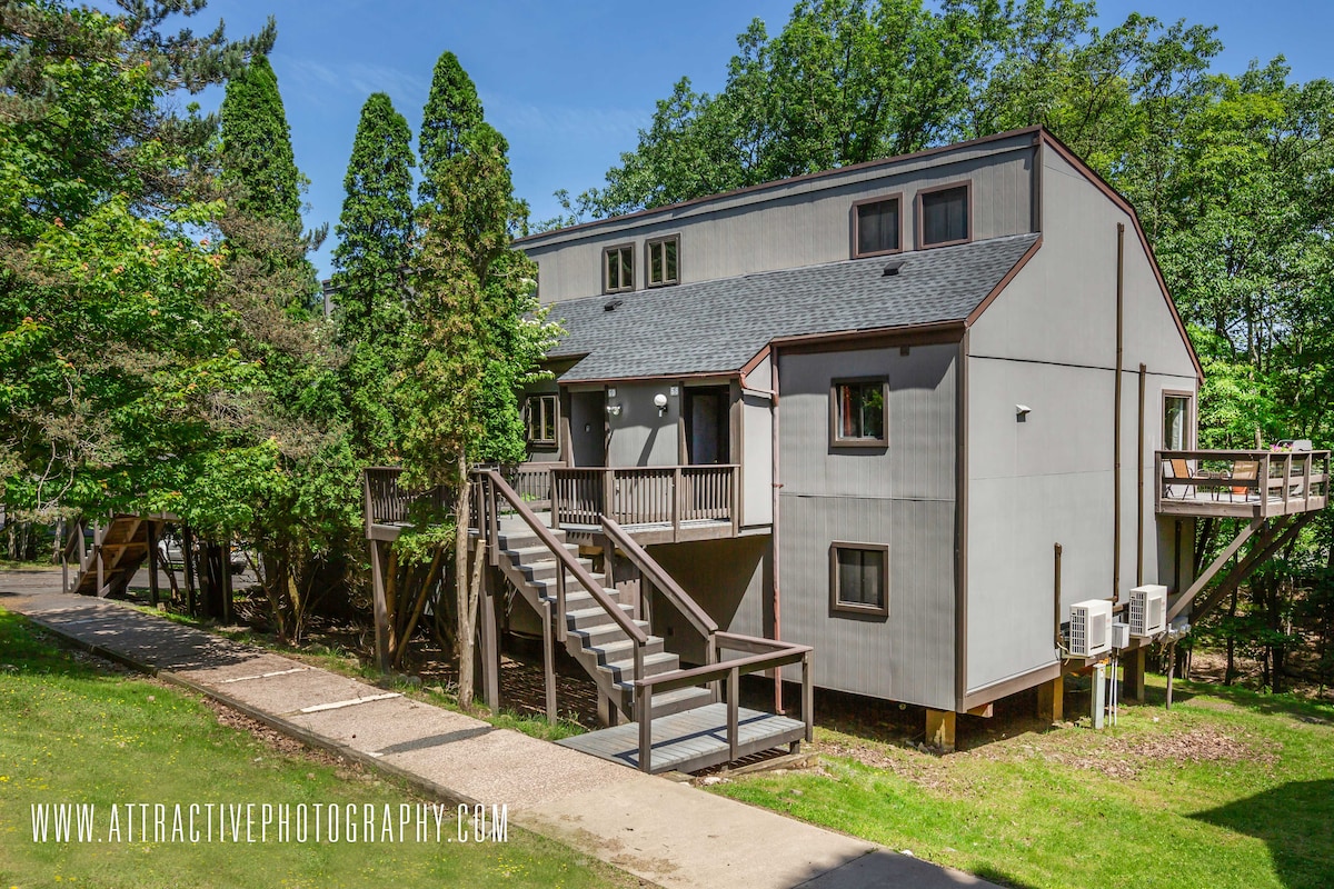 ¡Te damos la bienvenida a High Pass Lodge! Recién renovado y convenientemente ubicado en la cima de la montaña Camelback, a poca distancia a pie de la entrada/salida de esquí. Piscina cubierta climatizada, sauna, jacuzzi y mucho más para que los huéspedes disfruten (incluido en tu estancia). ¡Cerca de parques acuáticos, el parque estatal Big Pocono, cervecerías, casinos, el circuito Pocono Raceway, tiendas outlet, restaurantes y más actividades para cualquier temporada! Disfruta de las impresionantes vistas desde la terraza mientras haces una barbacoa o ponte cómodo frente a la chimenea de la sala de estar y Roku TV.