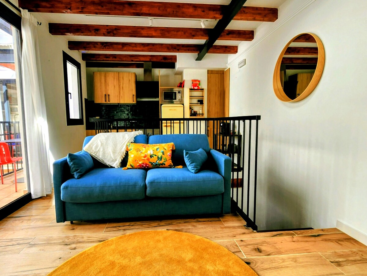 Propiedad recien reformada y lista para hospedarte. Loft entero con cocina, baño privado y terraza privada. En edificio con 7 apartamentos y un espacio comun en planta baja que tambien podras disfrutar si quieres. Se puede aparcar en la calle gratuitamente en toda la zona. Cortinas Black out Puedes elegir 2 camas individuales o 1 matrimonial. Restaurantes, farmacia y mercados a pocos metros A solo 1min de metro Cantereria y Tranvia que te llevaran a los sitios turisticos en breves minutos