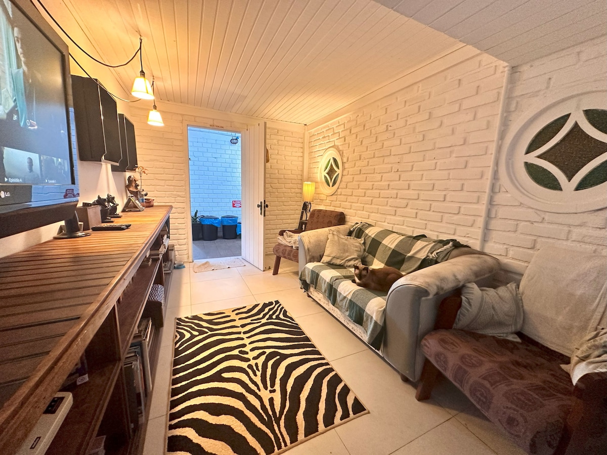 ¡Vive días únicos en Floripa! 🌴✨ Disfrute de un espacio privado y acogedor, perfecto para relajarse. Situado a 8 minutos del aeropuerto, a 15 minutos del Centro y a 9 km de Praia do Campeche. Acomódese en la suite climatizada, prepare sus comidas en la cocina completa (con horno, microondas y utensilios), disfrute de un delicioso desayuno y disfrute del área exterior exclusiva con spa de hidromasaje climatizado. ¡Comodidad, privacidad y practicidad para una estancia perfecta y ACOGEDORA! 🌊✨🏡