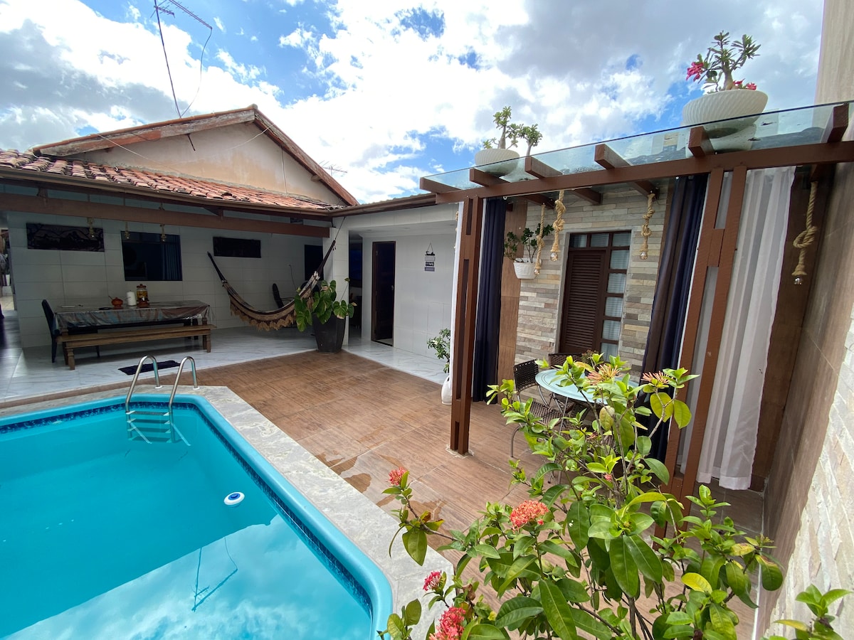 Casa muy cálida y familiar, ideal para grupos de hasta 14 personas. - Garaje para 2 coches. - 1 habitación con 1 cama queen y 1 cama individual con aire acondicionado, 1 hamaca, mesa y ordenador (suite); - 1 habitación con 1 cama de matrimonio con aire y 1 cama individual; - 1 dormitorio con 1 cama queen y 1 cama individual con ventilador (suite); - 1 habitación con 1 cama doble, ventilador; - 1 dormitorio con 1 cama doble y 1 cama individual y ventilador; - Cocina completa; - 3 baños completos;