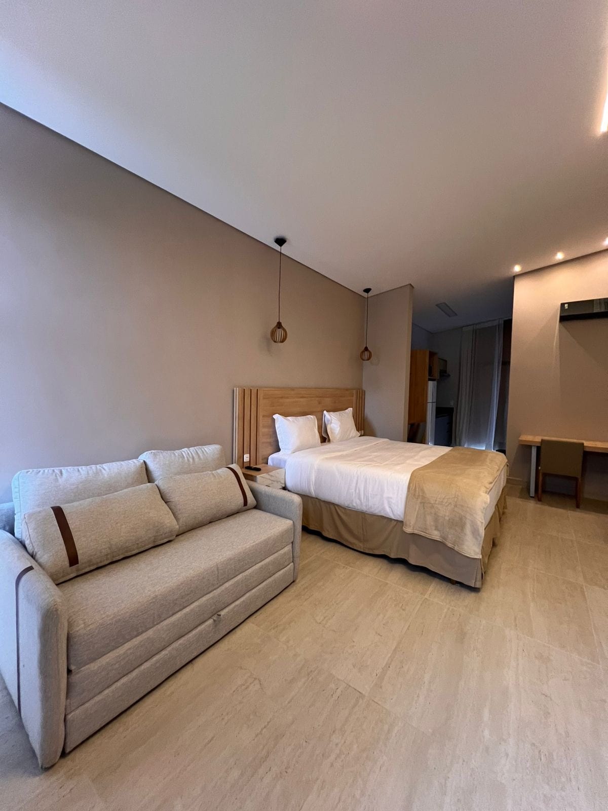 El apartamento completo en Eco Resort Capivari, en medio de la naturaleza de la Serra do Mar. 2 dormitorios, baño, sala de estar con cocina integrada, vista a la montaña y balcón con vistas al jardín. Wifi en toda la propiedad. Disfruta de piscinas, granja, paseos a caballo y en cuatrimoto, pedalinho, minigolf, sala de juegos, canchas deportivas, parque infantil y SPA. Ideal para relajarse, disfrutar en familia, con niños o trabajar con tranquilidad.