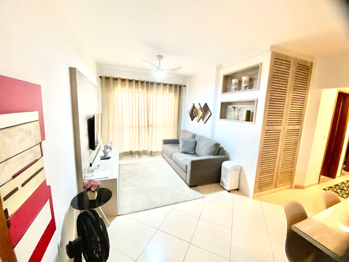 Disfruta de una experiencia elegante en este lugar céntrico. Nada es más agradable que estar en un lugar donde sientes que las cosas están extremadamente limpias, huelen bien y están bien cuidadas Extremadamente seguro, gimnasio, piscina, estacionamiento privado y todo lo que necesitas Aquí puedes trabajar o relajarte y disfrutar. Nuestro internet es excelente, también tenemos una Smart TV esperándote. Aire acondicionado en el salón y ventilador para garantizar la máxima comodidad en el dormitorio (1 aire acondicionado en la propiedad) Atención: el aire acondicionado está en el salón.