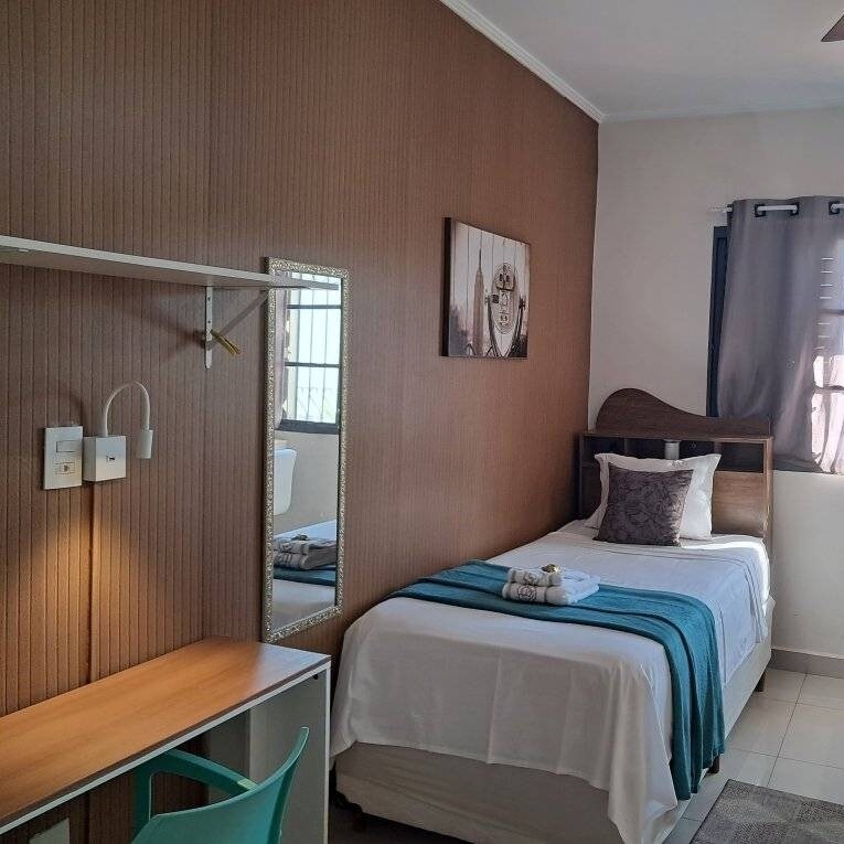 La casa de huéspedes se encuentra junto al centro comercial Iguatemi y al centro de la ciudad, con fácil acceso a las principales autopistas. Perfecto para hospedar a familias que asisten a graduaciones, bodas, eventos corporativos y ferias comerciales. • Total de 24 camas • Ropa de cama y toallas disponibles para alquilar • Oficina totalmente equipada adecuada para el trabajo • Cocina equipada • Lavadora y secadora • Estacionamiento gratuito • Sala de juegos • Sala de entretenimiento • Piscina • Sauna de vapor • Wi-Fi • Auto check-in • Se permiten mascotas