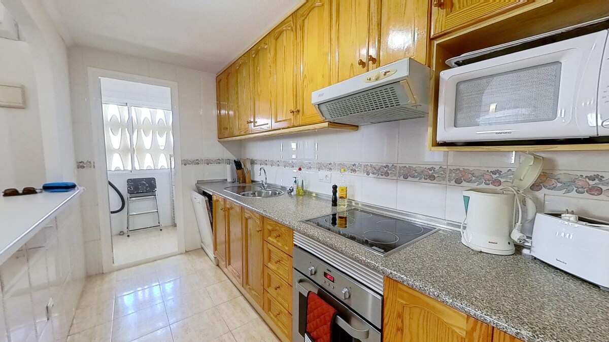 Bonito bungalow con vistas al mar, totalmente renovado y decorado con mucho cuidado. Todo el mobiliario es nuevo. Sala de estar, comedor, 2 dormitorios con armarios empotrados. 3 terrazas muy grandes, una magnífica piscina comunitaria. A menos de 5 min de dos de golfos internacionales “Villamartin Golf” y “Real Club Golf Campoamor” y a 10 min de los golfos “Las Colinas Country Club” y “Las Ramblas Golf”. A 3 km de la magnífica Playa de la Zenia y a 2 km del Shoping Center Zenia Boulevard.