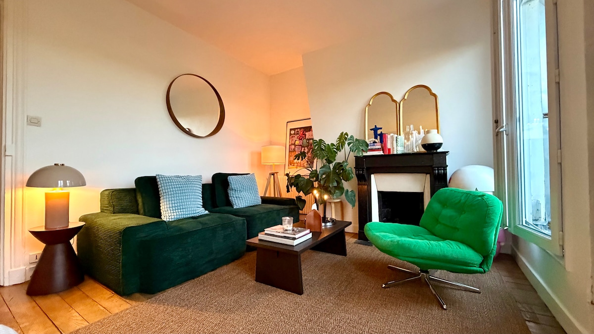 Impresionante apartamento parisino con un espacio de 160 mt2. Construido en 1830, este antiguo hotel con esculturas en talla de piedra en la fachada ha sido renovado en apartamentos burgueses con altos techos moldeados y grandes habitaciones. La decoración es ecléctica, esculturas, pintura y objetos que hemos adquirido a lo largo del tiempo. Cerca del Canal Saint Martin y del Marais Norte. Es el lugar para estar en París, nuevos restaurantes, bares y tiendas modernas y acogedoras.