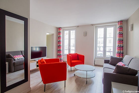 Apartamento con aire acondicionado de 60 m2 con una distribución de alta gama en pleno centro de París, en el barrio histórico de Montorgueil, famoso por sus tiendas de comestibles, pequeños bistrós y restaurantes. El apartamento está situado en el primer piso de un edificio en una calle muy tranquila. Fue renovado en 2023 por un famoso arquitecto y, por lo tanto, está muy bien organizado con equipamientos de muy alto nivel. Estará como en una suite de hotel con el encanto añadido de un verdadero alojamiento parisino.