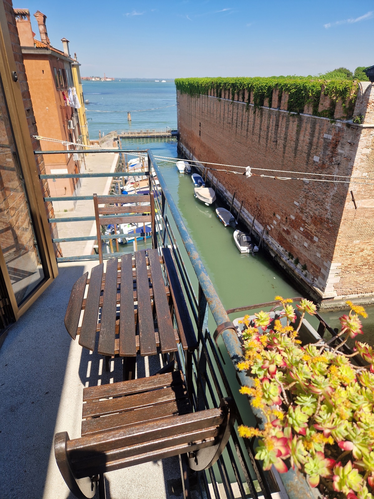 Delicioso apartamento, situado en un edificio típico veneciano, en el corazón de Venecia, a pocos pasos de la Bienal, a 5 minutos a pie de S. Marco y cerca de la parada de vaporetto. Consta de: entrada grande, 2 dormitorios principales, cocina y baño bien amueblados, terraza con vistas a la laguna. COMODIDADES: wifi gratuito, secador de pelo, aire acondicionado, calefacción, lavadora, microondas, ropa de cama amueblada, zona tranquila, cómodo transporte público, 5 min a San Marco y Bienal, terraza con vista a la Laguna