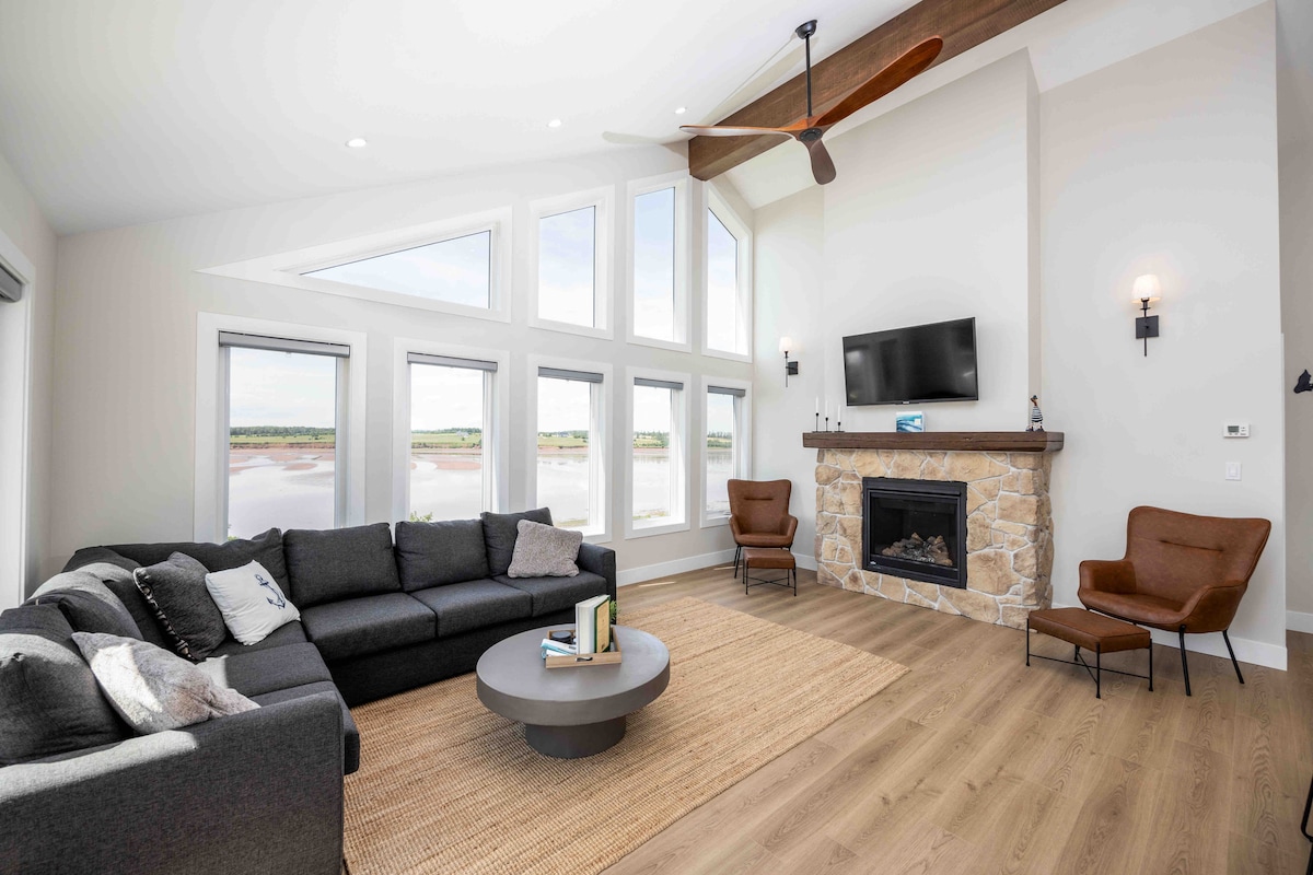 Your perfect PEI getaway begins down a peaceful island dirt road in Canoe Cove. Discover all the comforts of home at the breathtaking Oceanview Retreat. Unwind on the front deck as you listen to the soothing sound of ocean waves. For added comfort, enjoy our screened-in porch—perfect for both lounging and dining. The home's modern design and expansive windows fill the space with natural light, cultivating a bright, warm, and inviting atmosphere.