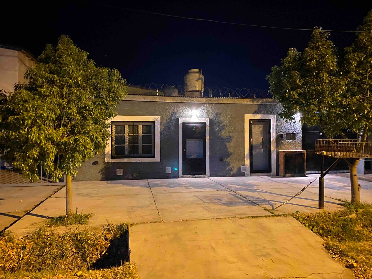 Disfrutá de una experiencia con estilo en este alojamiento de nivel en pleno centro de San Rafael. Para 2 personas, con opcion a 3 personas (sofa cama de 2 plazas en el living). Cerca de todo (rotiseria/farmacia/YPF/supermercado/restaurante) a 1 cuadra de la avenida principal y 4 del km 0, con cochera privada techada. Todos los servicios para una estadia placentera. Wifi/ 2 Smart TV con cable HD/ Aire Acond./Lavarropas/ Microondas/ Heladera. Balcon (podes fumar en este sector). Baño amplio.