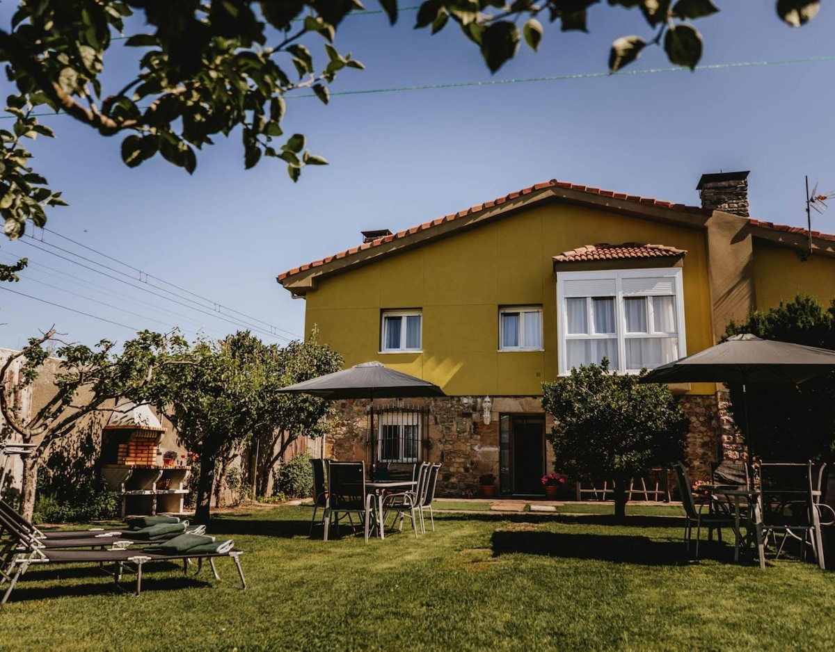 Es una de las 2 edificaciones más representativas de nuestro complejo. Casa de 3 alturas, todas de la misma dimensión. Casona de piedra con más de 100 años de antigüedad, rehabilitada: moderna y cómoda. Casa de hasta 20 plazas (14 plazas en cama + 4 en sofá-cama, 3 butaca-cama supletoria). Cocina, salón, comedor, (cocina completa. 7 habitaciones dobles. 6 Baños completos, y un aseo. 1 Salón en ático con 2 sofás cama Jardín privado, y cenador cubierto con barbacoa en jardín., y SPA.