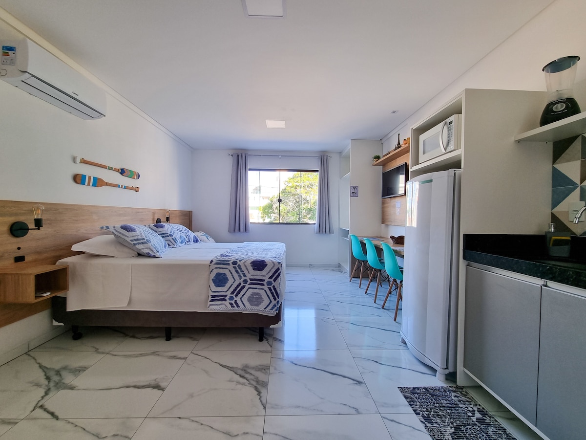 Relájese en este espacio moderno y confortable en Bombinhas. El alojamiento está situado en una ubicación privilegiada, entre dos de las playas más hermosas de Bombinhas. A 50 metros de la playa de Mar de Dentro y a 500 metros de la playa de Mar de Fora Mariscal. El espacio cuenta con cocina completa con heladera y microondas, utensilios. Aire acondicionado, smartv conectada, Internet con wifi gratuito, ropa de cama, toallas, baño con secador de pelo. Estacionamiento privado gratuito y monitoreado por cámaras de seguridad.