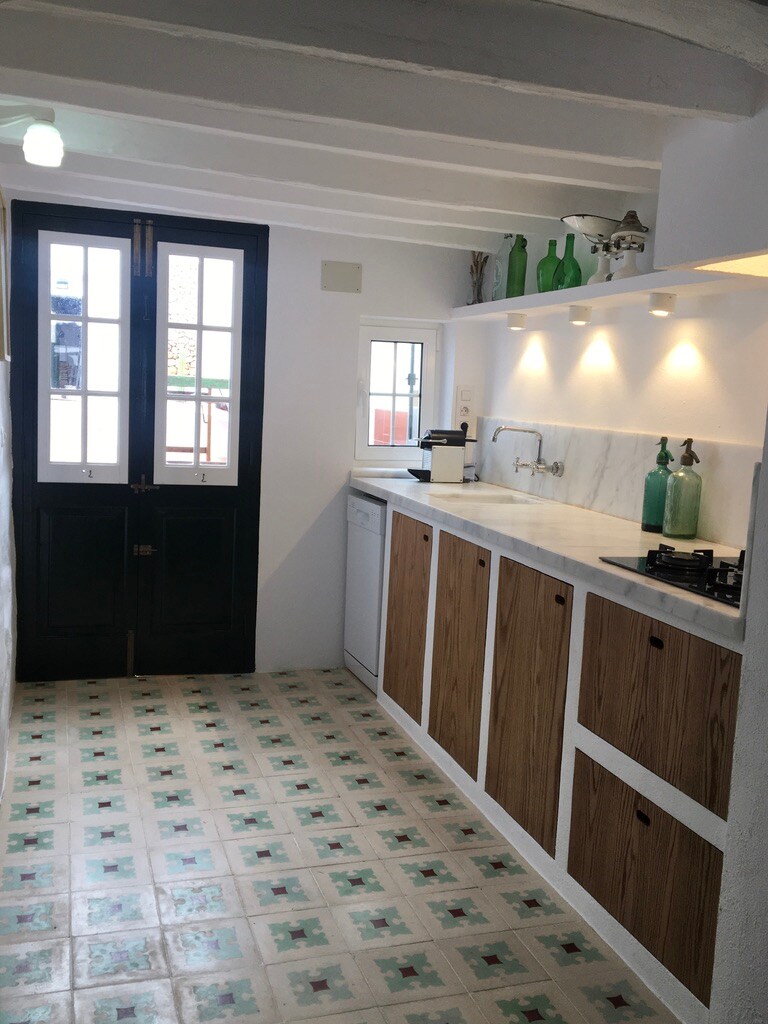 Encantadora casa tradicional de pescadores, se han mantenido elementos originales combinados con piezas de anticuario y todo el equipamiento nuevo necesario. Paredes de marés encaladas – suelo de barro original – techos blancos de viguería en madera – forja menorquina – carpintería verde carruaje – cortinas de fibras naturales – lámparas modernistas – mobiliario de anticuario – decoración de la isla y lugares del mundo – ilustraciones – algo marinero – auténtico – Mediterráneo.