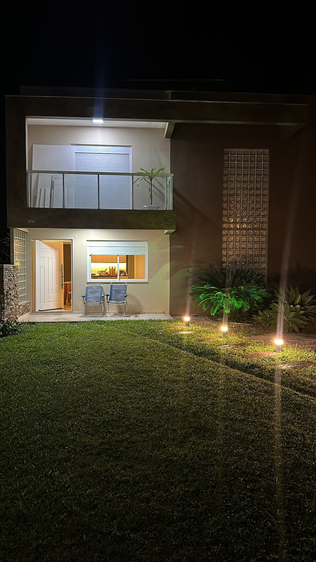En el paseo marítimo, con vistas. Casa de condominio con dos piscinas, adultos y niños, sala de juegos. Patio interior cerrado, muy seguro para niños. Casa completa y de alta gama. Estacionamiento, barbacoa, espacio de red. La zona frente a un mate mirando el movimiento del paseo marítimo. Ambiente en la parte trasera de la casa con pérgola y vista al patio y piscina del condominio. Televisión e Internet a tu disposición. Se permiten animales pequeños.