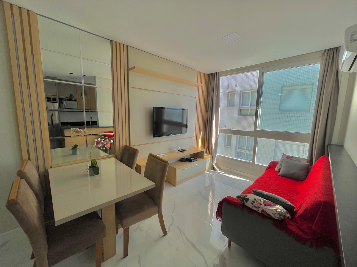 - El edificio se encuentra a 350 metros de la PLAYA. - Situado en el barrio de Navegantes (cerca de Santinha). - Edificio con Gimnasio, Azotea, Espacio Mascotas. - El apartamento tiene capacidad para 4 personas cómodamente. - Tiene una plaza de aparcamiento para 1 coche (CAPACIDAD PARA CAMIONETAS). - Ubicado a dos cuadras de la Praça Luterana con parque de diversión para niños y canchas de tenis de playa, fútbol y voleibol de playa. - Hay supermercados, farmacias, restaurantes y bares cerca.