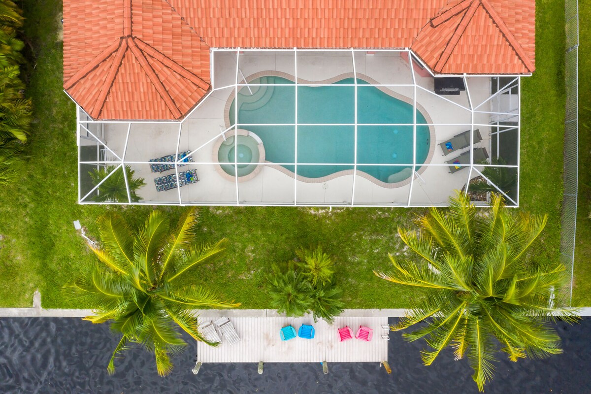Te damos la bienvenida al soleado Cape Coral. En Palaco Paradise, disfruta de una INCREÍBLE PISCINA CLIMATIZADA con sol en el lanai toda la tarde. ¡Parrilla, relájate o dirígete a 30 minutos del equipo de playa de Fort Myers Beach incluido! Alójate más de 4 noches para obtener pases GRATUITOS para parques acuáticos. ¡Pesca desde el patio trasero o toma un PASEO EN BARCO de 5 MINUTOS hasta EL RÍO desde tu propio muelle personal! El café fresco está listo cuando llegues y estás a solo 35 minutos del aeropuerto. ¡Todo lo que necesitas, nada que no hagas, solo sol, agua y pura relajación!