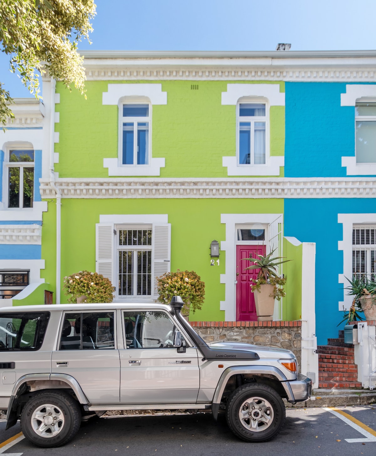 Uncover history in our pre-1860 blue Cape Town townhouse, built as slavery neared its end. Open up our skylight and walk up to a spectacular rooftop deck with wraparound views of Devil's Peak and Table Mountain as you enjoy our welcome drinks! Inside the house find 3 bedrooms (all with ensuite bathrooms) and a splash of vibrant style. All of this with incredible proximity to Cape Town's food, history, and entertainment. Perfect for 6, this home is a gateway to Cape Town's past and present.