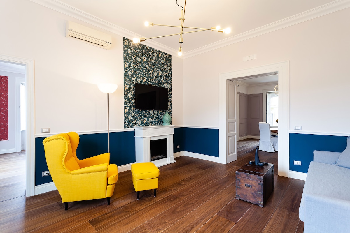 Elegant apartment located in the prestigious Vomero district, set within a historic 100-year-old villa near Sant’Elmo Castle. Blending historic charm with modern amenities, the apartment provides an ideal base for guests seeking high-quality accommodation in Naples, with excellent connections to the major attractions. Surrounded by greenery yet close to cultural landmarks, shops, and public transport, the apartment is perfectly positioned for exploring Naples and its surroundings.