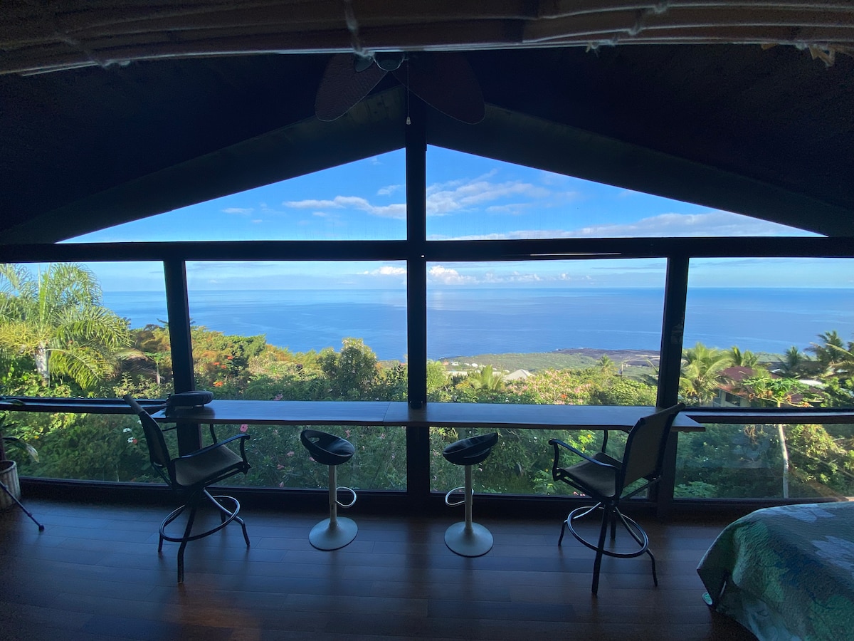 Casa de lujo de diseño con impresionantes vistas de 180 grados a la costa con vistas a las bahías de Kealakekua y Honaunau. Relájate en el jacuzzi, haz yoga en el lanai de gran tamaño, el corazón de este tranquilo refugio hawaiano. En un barrio tropical seguro y de primer nivel con un ambiente de Hawai antiguo, a pocos minutos de playas, restaurantes, cafeterías, tiendas de comestibles y bancos, y a solo 30 minutos de Kona. Los huéspedes dicen que la vista del océano y las montañas trae tanta calma que pasan horas en el lanai, sin querer irse.