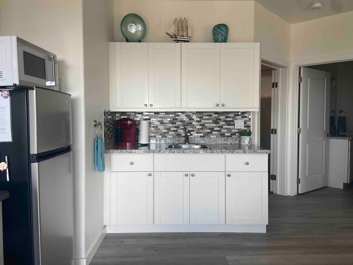 Esta joya escondida está en la bahía de Kealakekua. Entorno privado en nuestro patio trasero inferior. Camina hasta la cercana playa de Manini. Estamos ubicados a 4 millas en la parte inferior de Napoopoo Rd. Cocina al aire libre totalmente equipada. Estufa de gas, nevera/congelador. Sala de estar/comedor y dormitorio/área de tocador cerrada con área abierta en la línea del techo donde pasa una gran rama de árbol de ficus. Ducha exterior/área de baño. Muy privado. Los precios diarios incluyen impuestos estatales de Hawaili, 11 % TAT y 4,5 % GE.