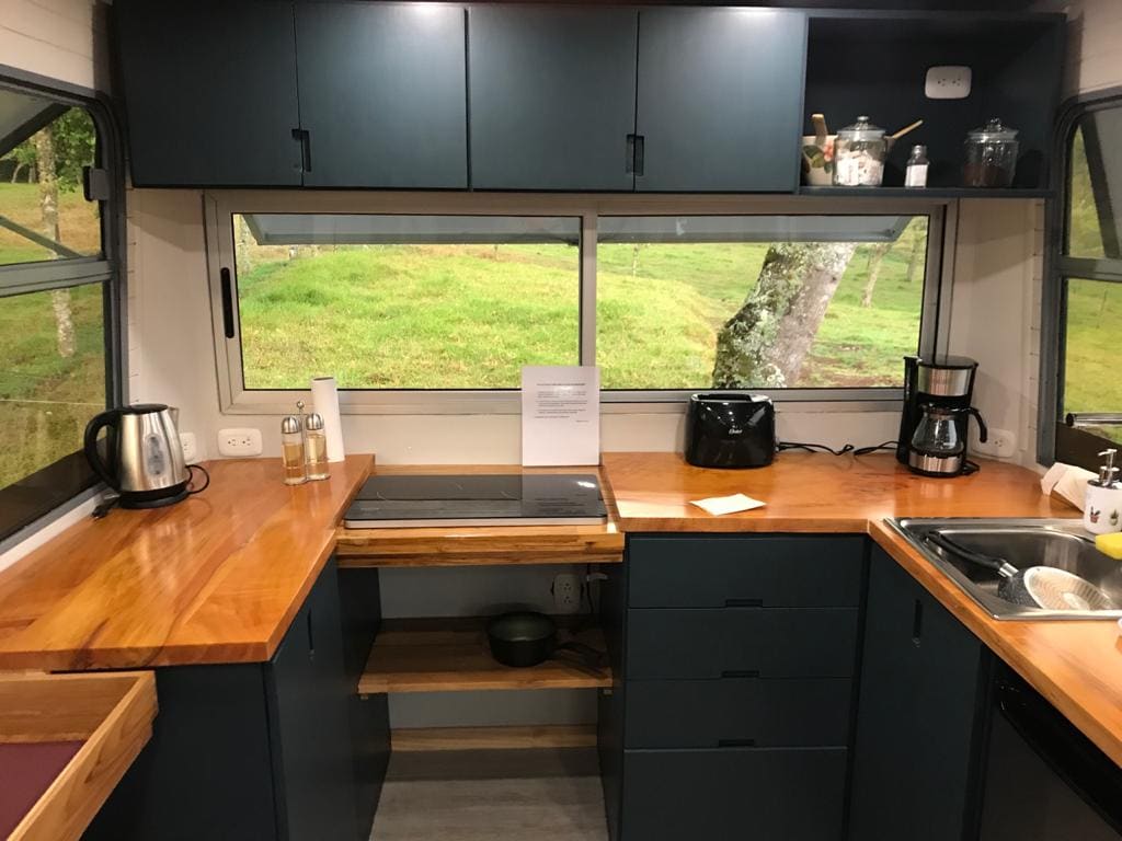 Escapa a un bus escolar convertido con piscina privada tipo plunge y vistas panorámicas. Cama Queen, cocina equipada, ducha tipo lluvia, Wi-Fi y escritorio de madera de Guanacaste. En Tierras Morenas, a solo 20 min del Lago Arenal. Ideal para parejas o viajeros solos que buscan naturaleza, comodidad y una experiencia única.