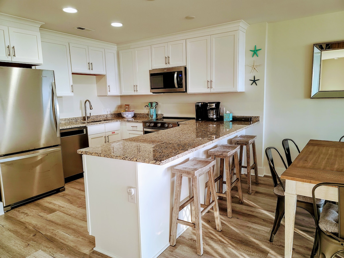 Situado en el corazón de Carolina Beach, en el paseo marítimo, este apartamento nuevo de un dormitorio y un baño tiene unas vistas increíbles del Atlántico y del paseo marítimo. ¡Desde tu balcón privado puedes ver hermosos amaneceres y observar las actividades de la playa! ¡La galardonada Britts Donuts está a pocos pasos! Esta unidad está totalmente equipada, tiene una plaza de aparcamiento privada asignada y se encuentra en un edificio seguro accesible con ascensor. Es solo un pequeño trozo de cielo que te hace sentir como en casa.